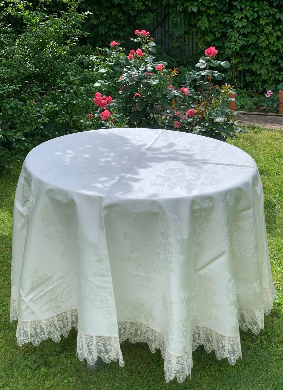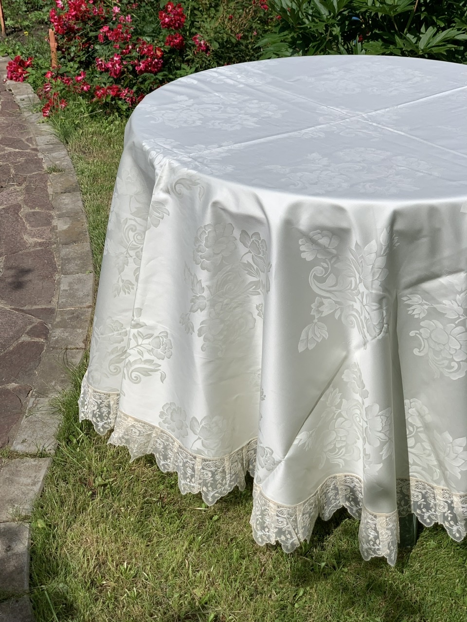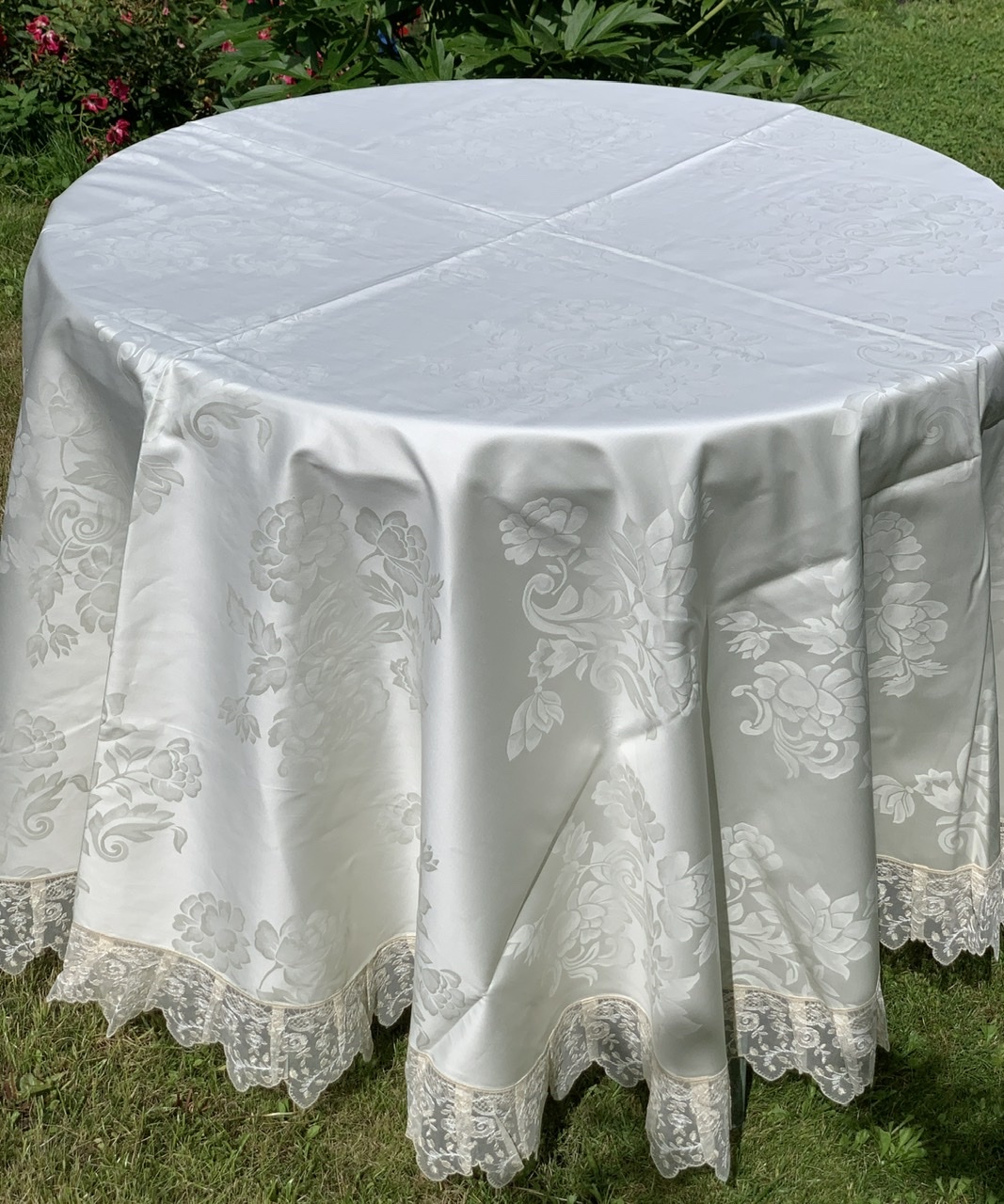 Круглая скатерть премиум-класса из сатин-жаккарда.