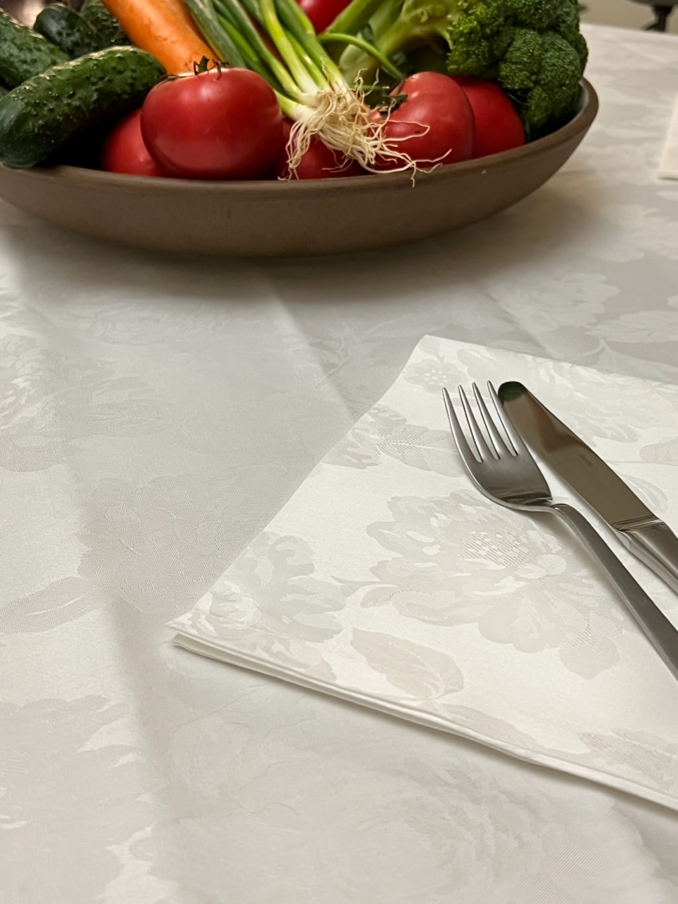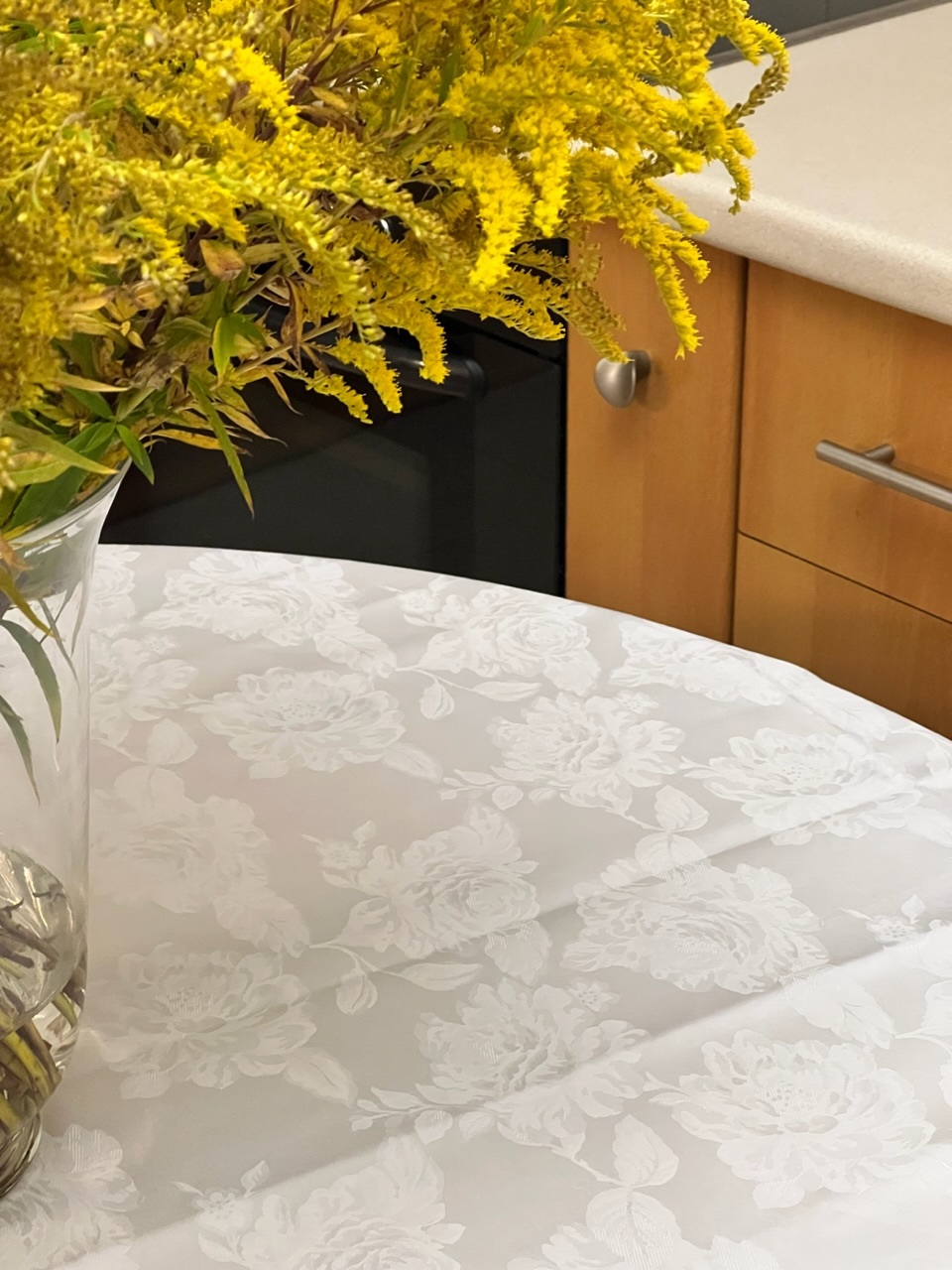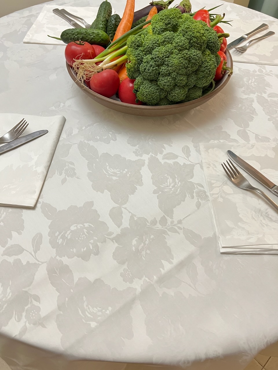 Круглая скатерть премиум-класса из сатин-жаккарда.