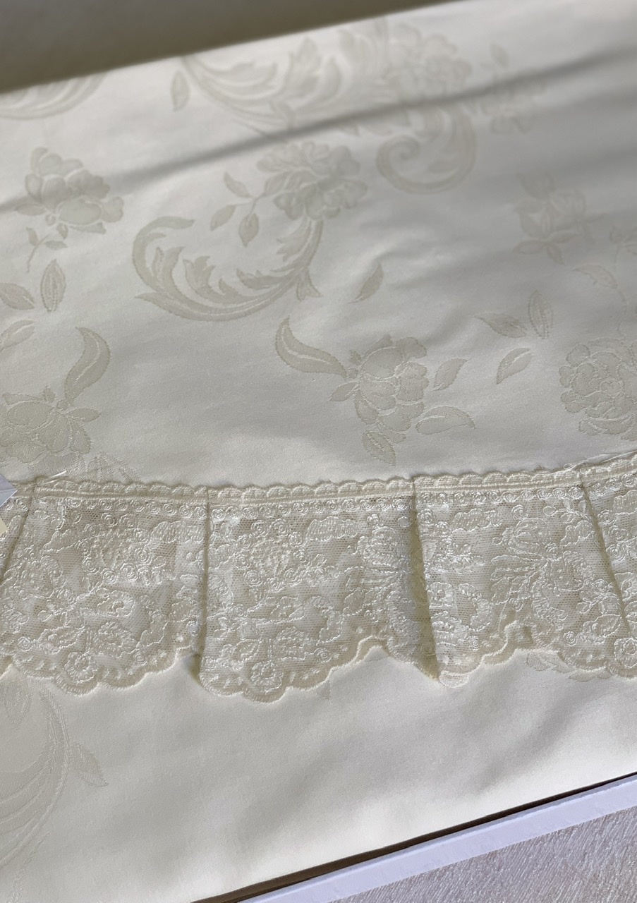 Скатерть 220 и 12 салфеток Palombella Svezia Pizzo-1 сливочные