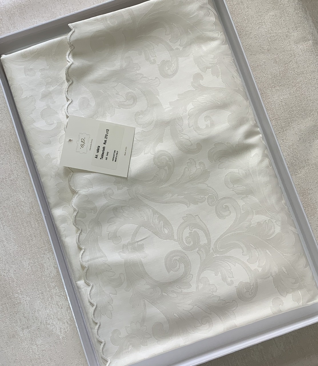 Предлагаем вашему вниманию эту скатерть из жаккардового сатина, диаметром 270 см и 12 салфеток.