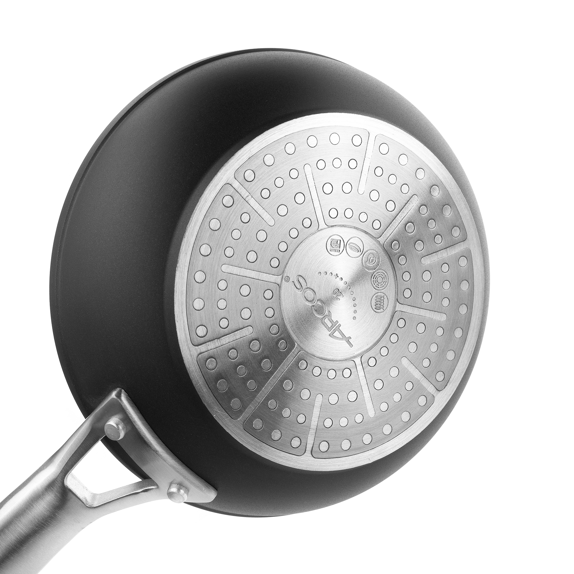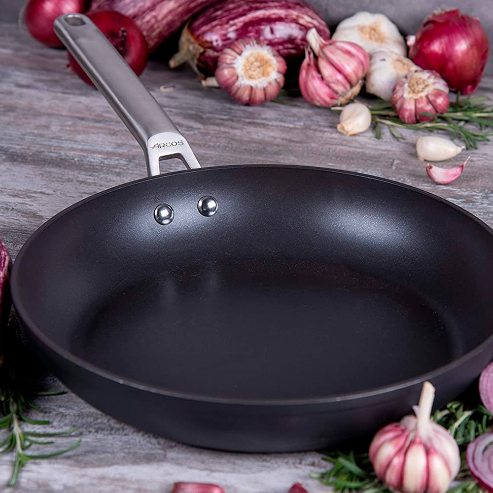 Металл, из которого изготавливается посуда Arcos, покрывается особым антипригарным напылением. В его основе присутствуют мелкодисперсные частицы титана, дополненные различными смолами и компонентами, усиливающими общий защитный эффект. Изделия из нержавеющей стали покрывают тефлоновым слоем, практичность которого проверена многолетними испытаниями в реальных условиях.