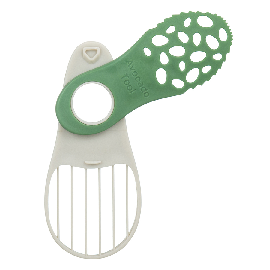 Слайсер для авокадо Vik 5 в 1 поможет одним движением руки удалить косточку, разделить мякоть на ровные кусочки и при необходимости превратить ее в однородную кашицу. Специальная зазубренная кромка легко прорезает кожицу, а изогнутый наконечник быстро извлекает целые половинки плода. Изделие выполнено из полипропилена. Материал хорошо очищается от загрязнений, устойчив к износу. Благодаря складной конструкции инструмент занимает минимум места при хранении, без труда помещается в ящик кухонного стола и органайзер.