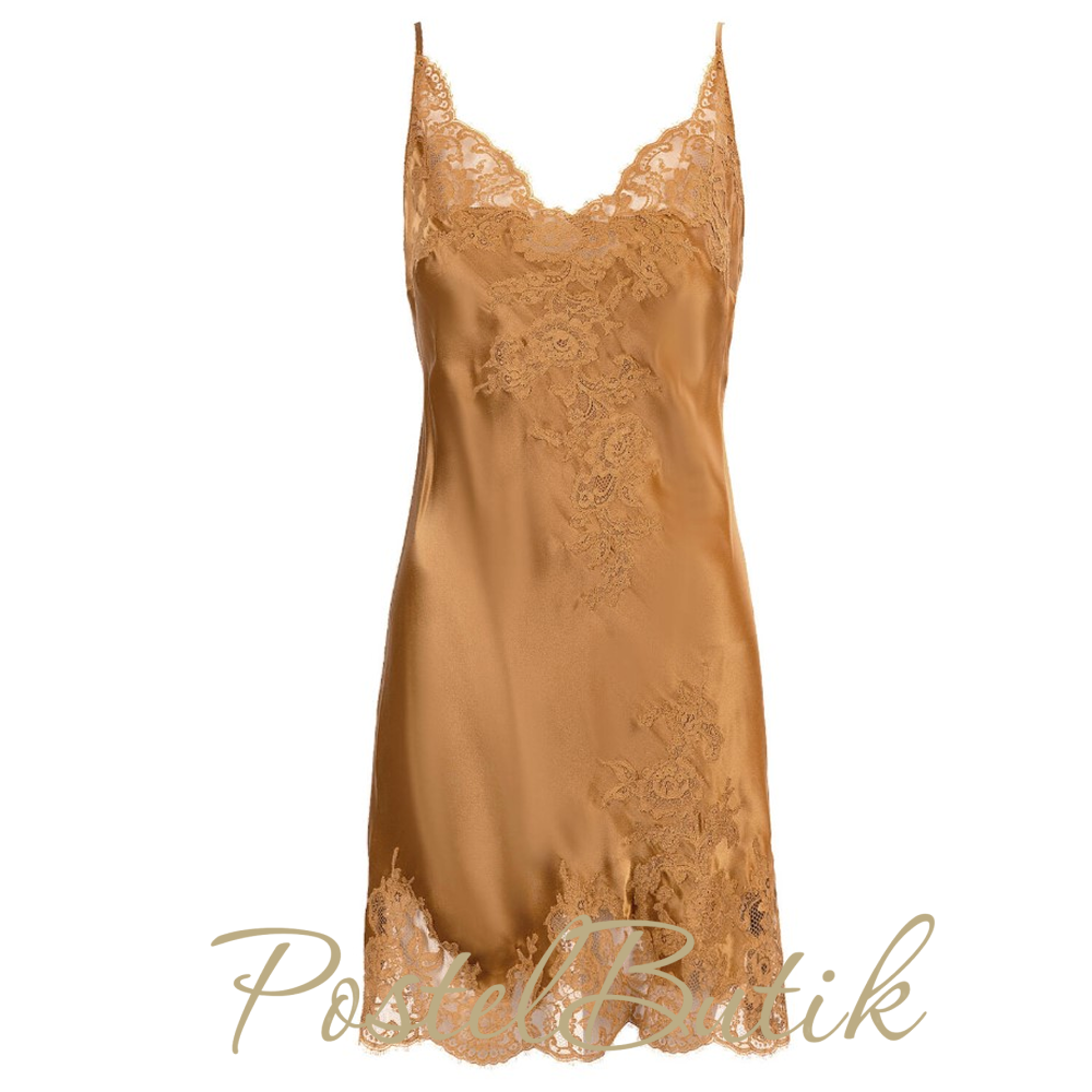 Представленная в благородном золотисто-коричневом оттенке «нуазетт», сорочка излучает тепло и мягкое сияние. Этот цвет подчёркивает естественную красоту кожи и остаётся актуальным вне времени и трендов.