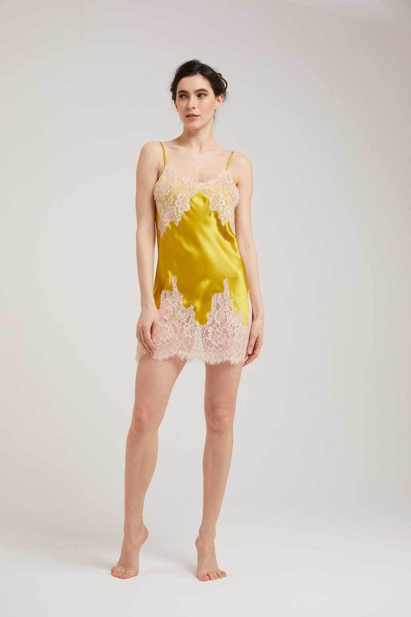 Нежнейшая короткая шелковая сорочка. Контрастные кружева. Материал: 100% шелк.