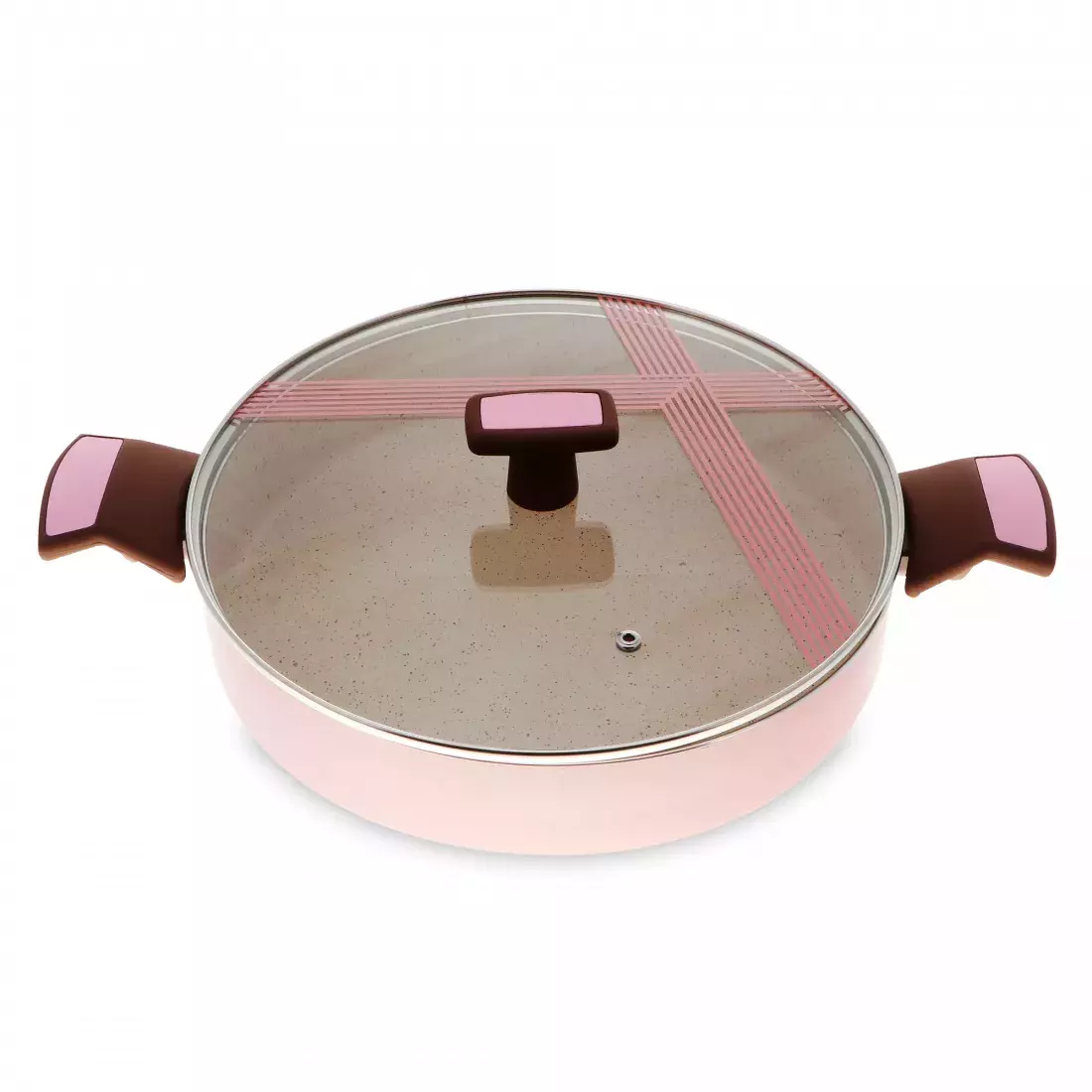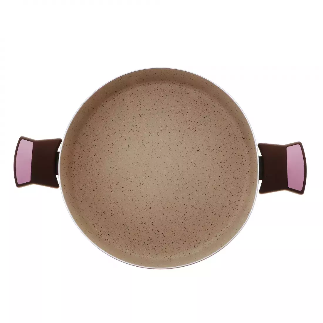 В основе каждого сотейника лежит прочный алюминиевый сплав. Этот металл обеспечивает максимально равномерный нагрев всей поверхности чаши благодаря высоким показателям теплопроводности. Внутренняя поверхность изделия покрывается уникальным антипригарным слоем, дающим возможность использовать минимум масла или жира в процессе приготовления еды, что делает ее более полезной без утраты вкусовых качеств.