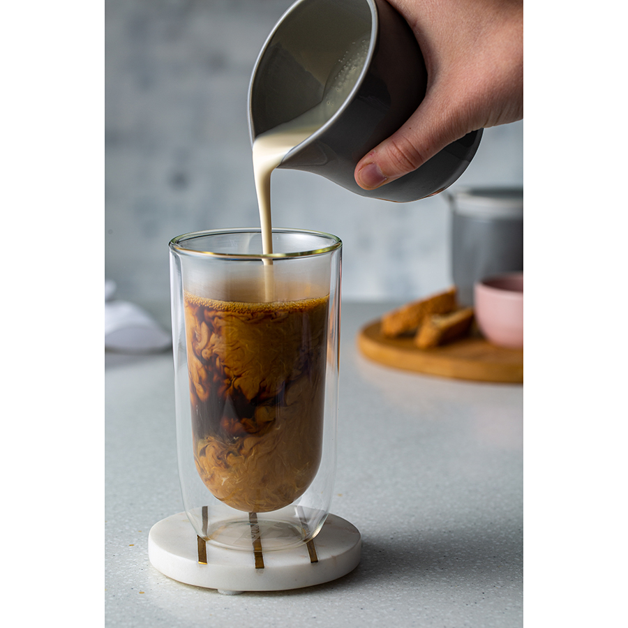 Стильный стакан для капучино прекрасно подойдет для подачи любимого кофе и украсит пространство.