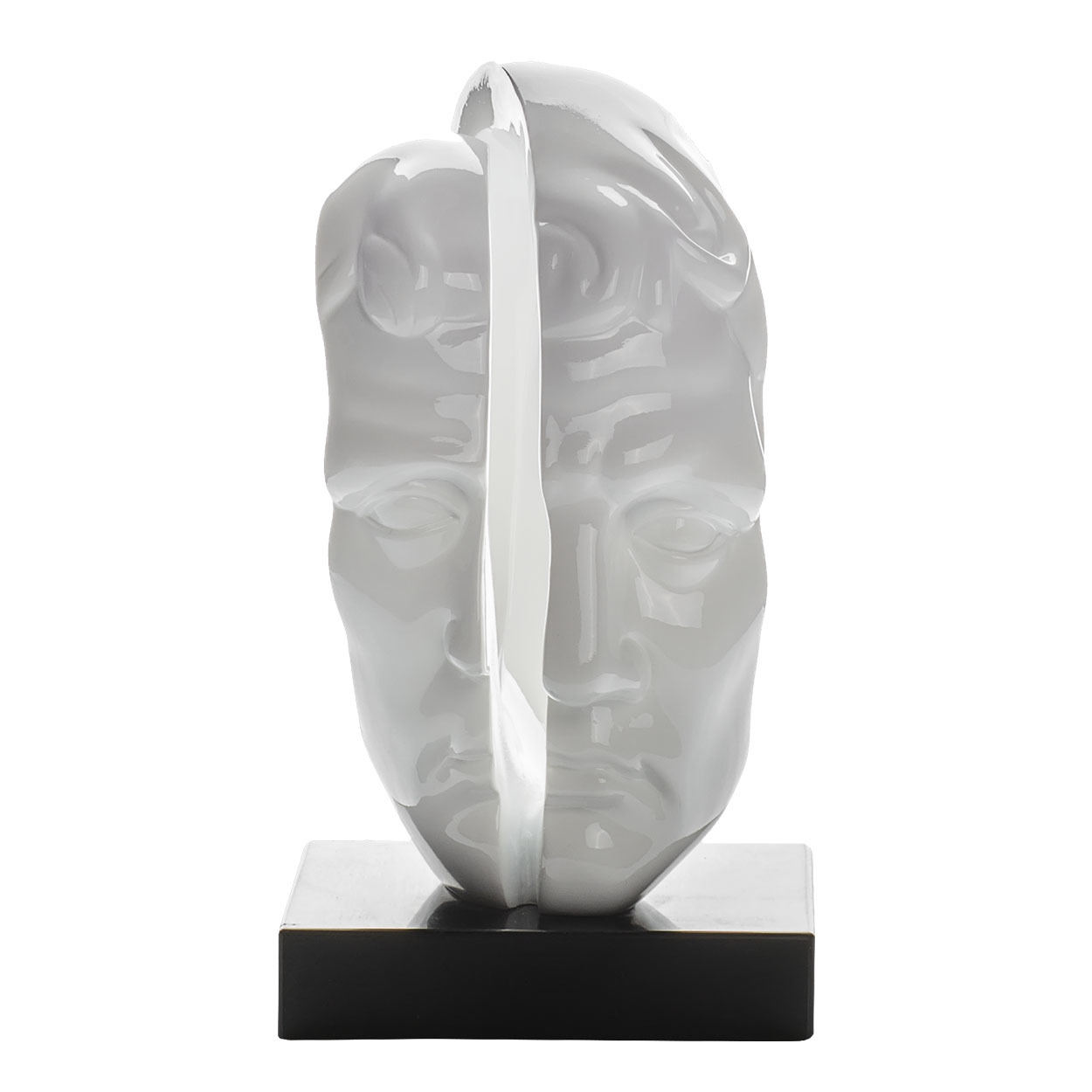 Абстрактная статуэтка-маска "Лицо мужчины" напоминает о дуализме человеческой природы - его земном и божественном началах, философском осмыслении свойств характера, преходящих моментах бытия перед лицом вечности. Белое сияние полимерной смолы, из которой выполнена маска, контрастирует со строгим основанием черного цвета. Статуэтка станет прекрасным интерьерным украшением кабинета или гостиной в классическом стиле или стиле ар-деко.
