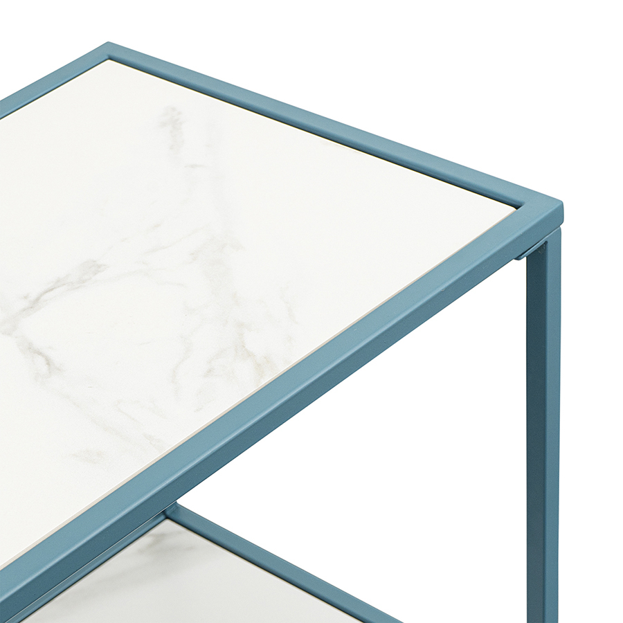 Материалы: столешницы – углеродистая сталь, керамика, каркас – сталь с порошковым покрытием. Размеры: 120х35х76 см. Цвет: белый/бирюзовый.
