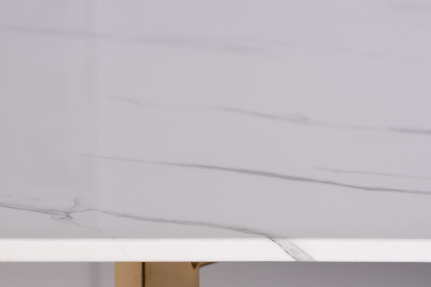 Классические стильное решение для современной кухни или столовой зоны – установить белый обеденный стол. Благодаря своей лаконичности модель смотрится благородно. Этому способствует каждая ее деталь: массивная столешница из мрамора, металлические плоские ножки и плавные геометрические линии. Обеденный стол белого цвета красиво впишется в интерьеры в стилях авангард, фьюжн, неоклассика, модерн и ар - деко. Глянцевая поверхность и металлический блеск ножек придают особого стиля изделию. Купить обеденный стол под мрамор можно в компании Garda Decor с доставкой. Лаконичная форма и простота - залог удачи этой модели стола. Узор мрамора достигается нанесением пленки с принтом на закаленное стекло, далее покрывается полимерным составом и полируется до глянцевой поверхности. Толщина столешницы - 10мм