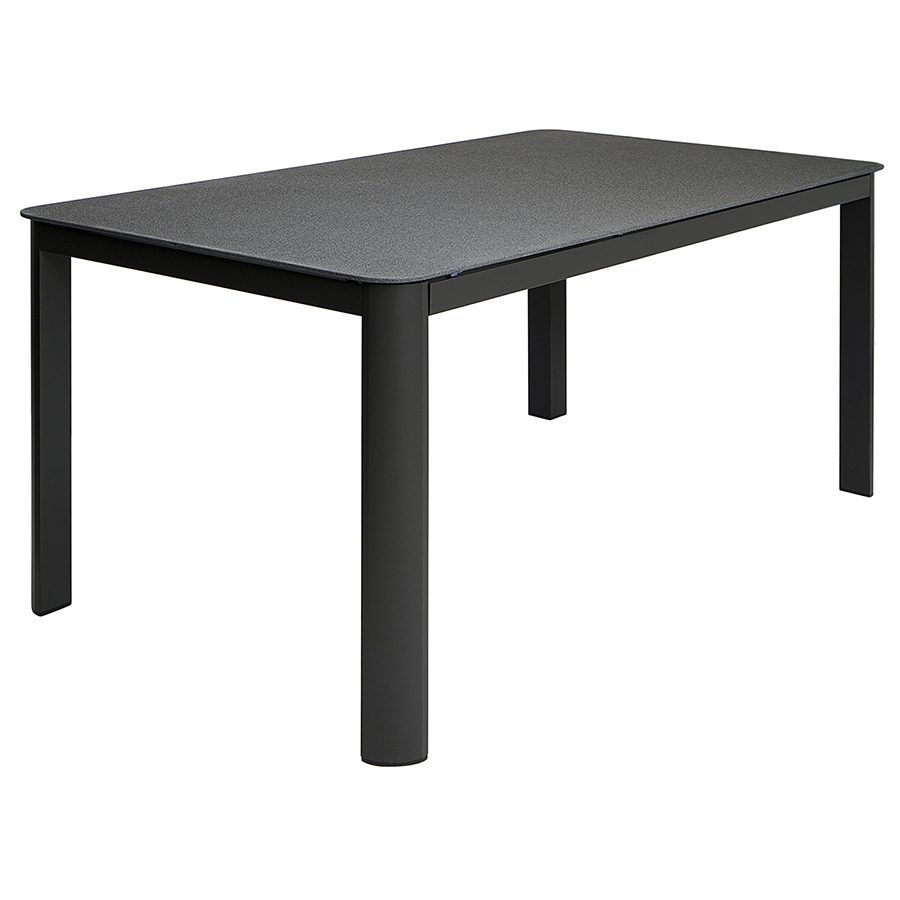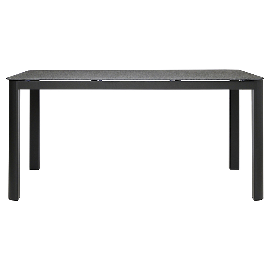 Материал: алюминий, закаленное кварцевое стекло. Размеры: 160х90х75 см. Расстояние между ножками: 87 см и 157 см. Цвет: темно-серый.