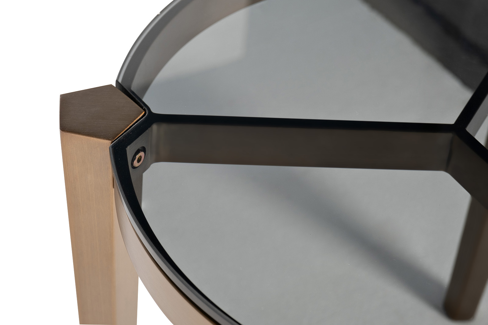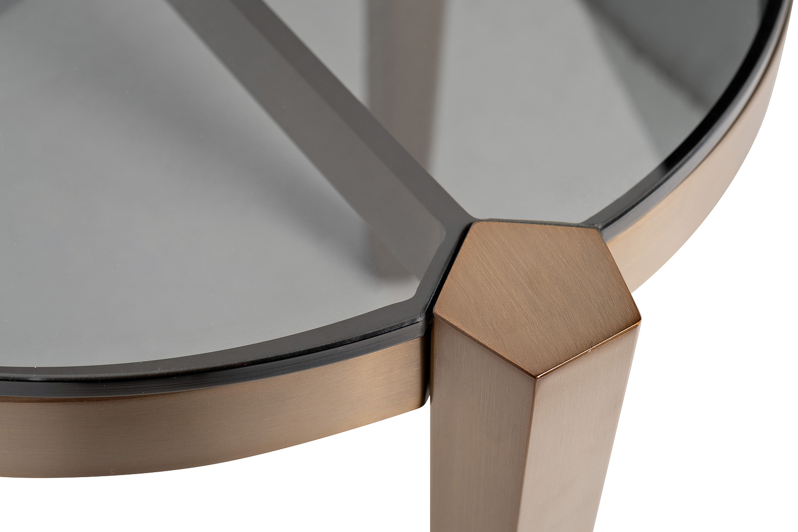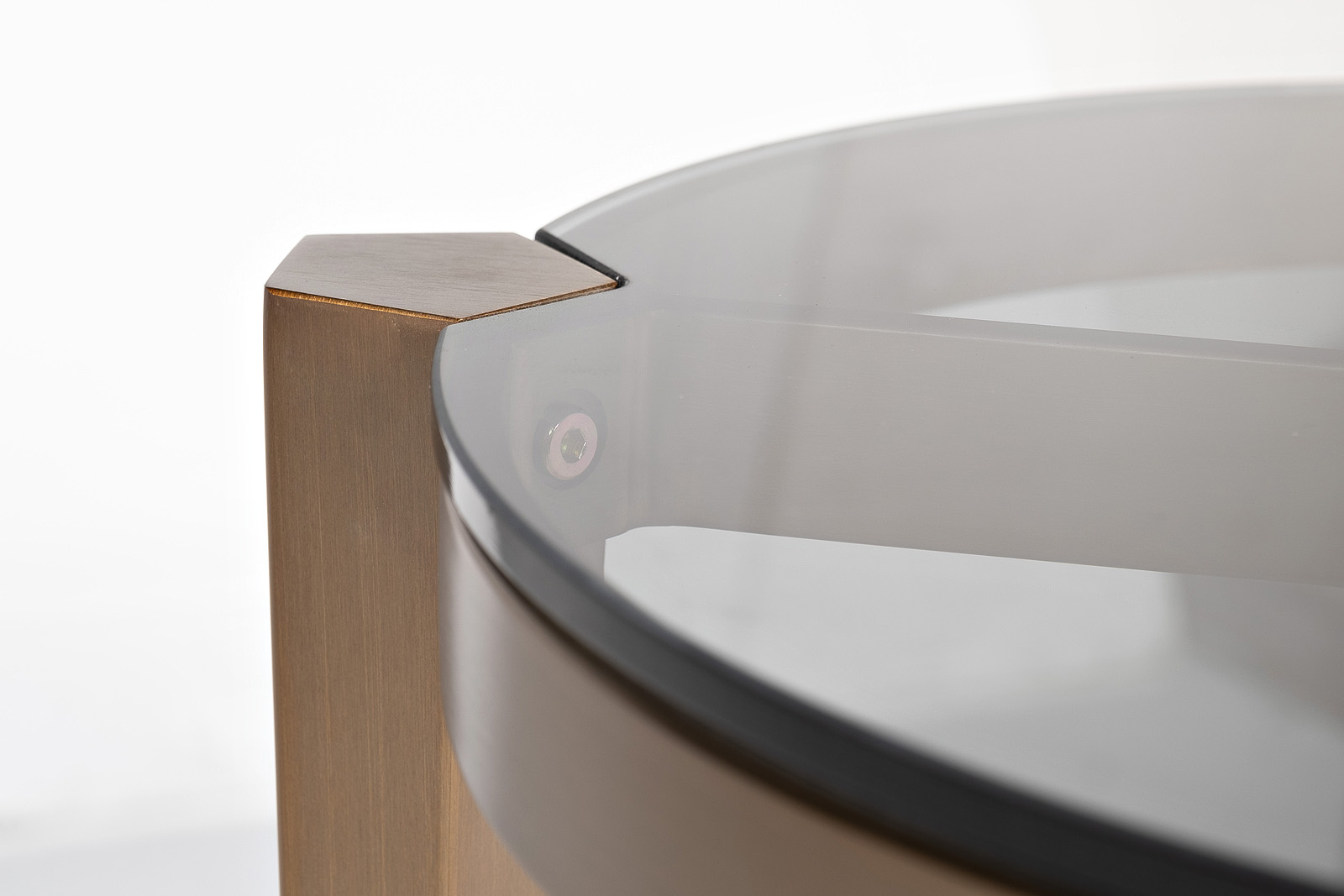 Этот журнальный столик является квинтэссенцией функциональности и утонченного дизайна в компактном формате. Его пропорции и гармоничное сочетание материалов делают его идеальным дополнением к пространству для отдыха, подчеркивая его продуманность. Уменьшенная версия круглого журнального стола из этой серии, сохраняющая всю его эстетику и характер. Дымчатая стеклянная столешница обеспечивает визуальную легкость, позволяя основе столика выступать как самостоятельный эстетический элемент. Изящные, слегка сужающиеся к низу ножки из сатинированного металла несут в себе отсылку к индустриальному шику, смягченному общей элегантностью. Этот малый круглый столик идеально подходит для размещения чашки кофе, книги или декоративного элемента, становясь незаметным, но при этом стильным помощником. В нашем ассортименте вы можете подобрать так же другие журнальные столы этой серии, но другого размера: арт. 58DB-15857, 58DB-25857