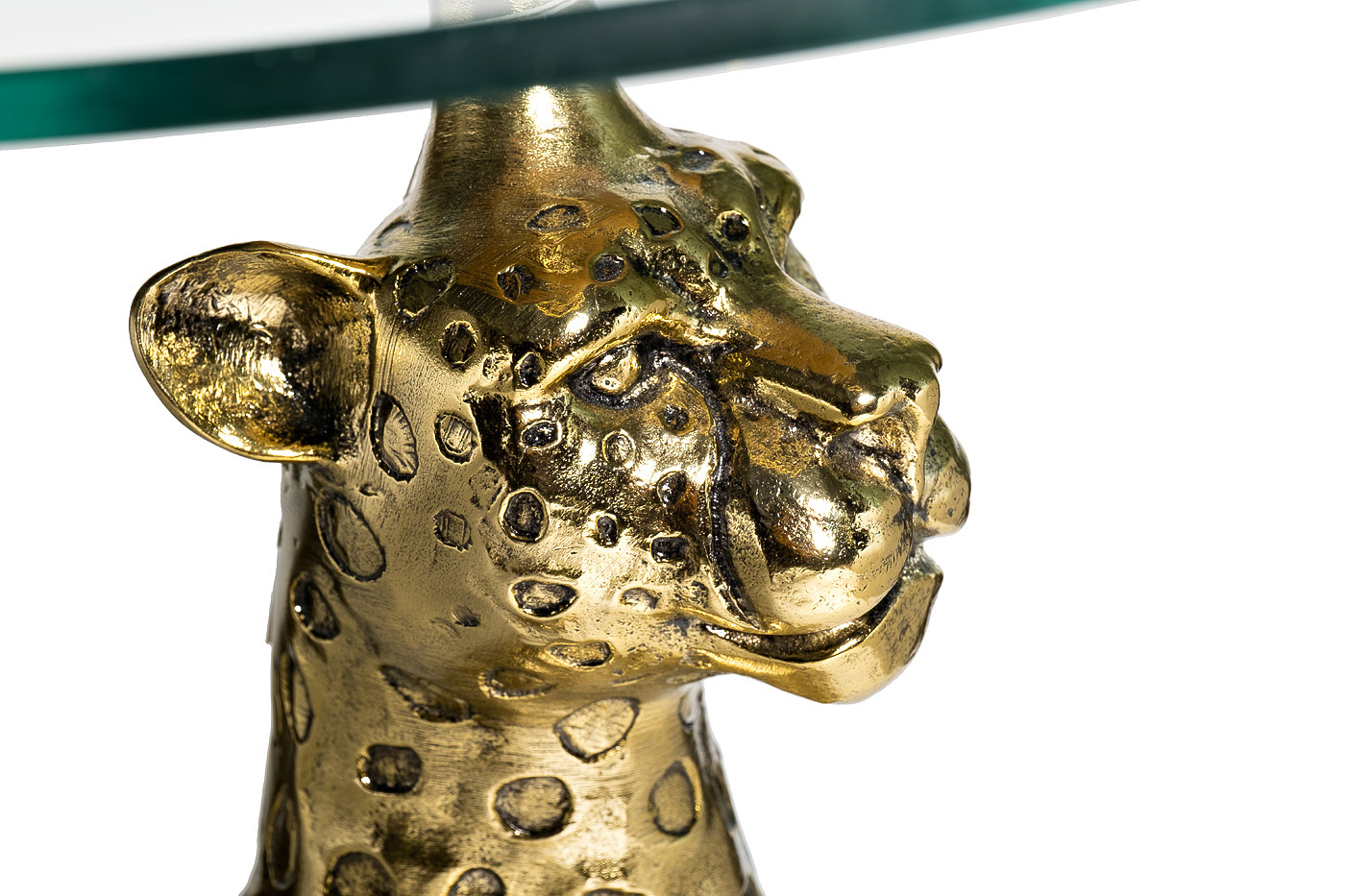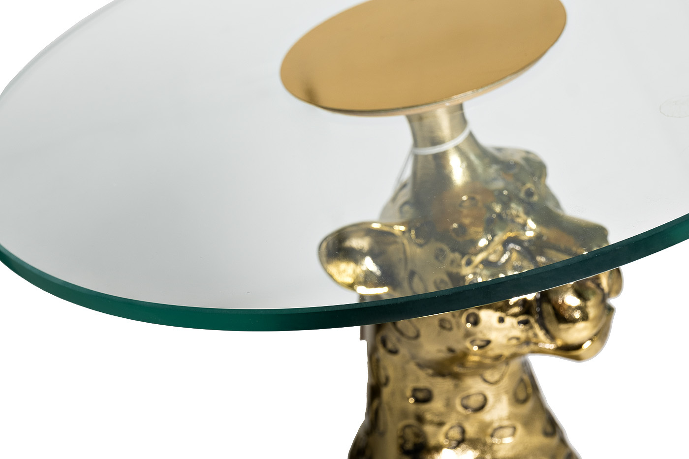 Восхитительный журнальный столик авторской работы смотрится артистично и привлекательно. Экзотическая фигура сидящего ягуара в основании стола держит столешницу из закаленного стекла. Столик станет прекрасным украшением в стиле ар-деко для вашей гостиной или спальной комнаты. Кофе или шампанское, сервированное на таком столике, покажутся необычайно вкусными и особенными.