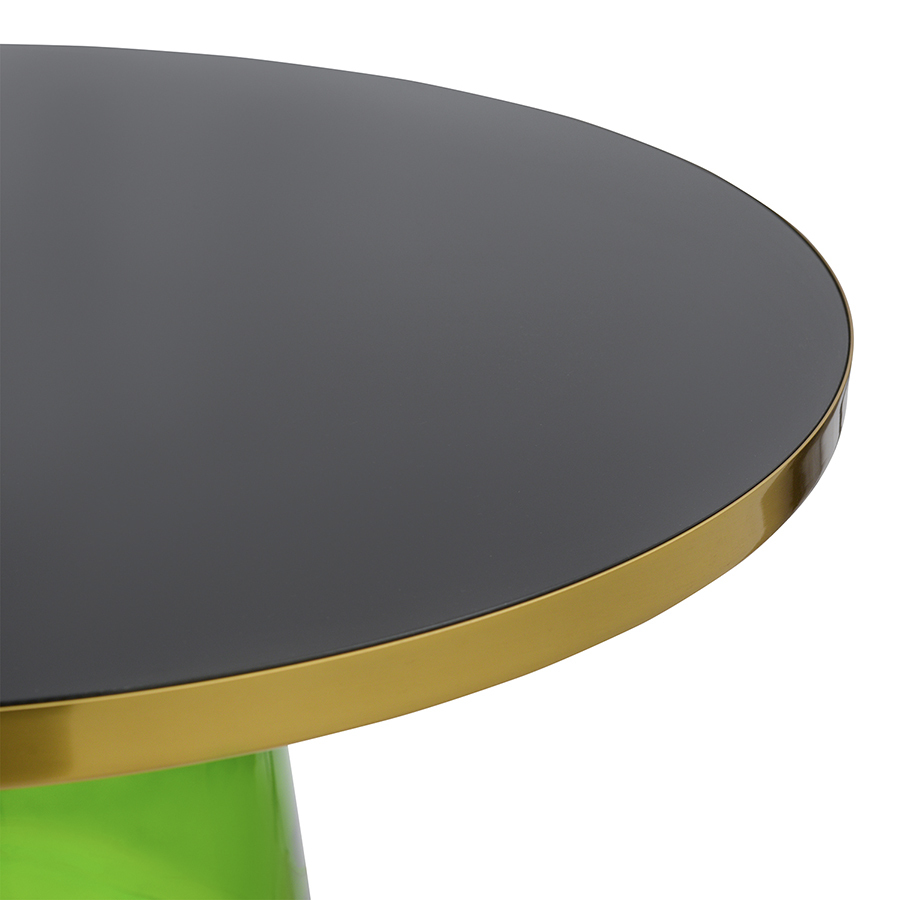 Материалы: закаленное стекло, сталь. Максимальная нагрузка - 10 кг. Диаметр: 75 см. Высота: 36 см. Цвет: черный/зеленый.