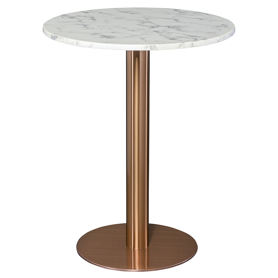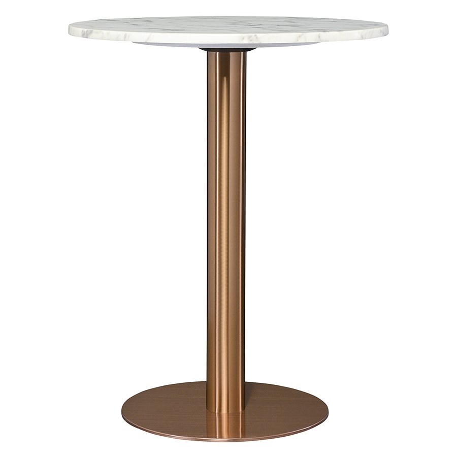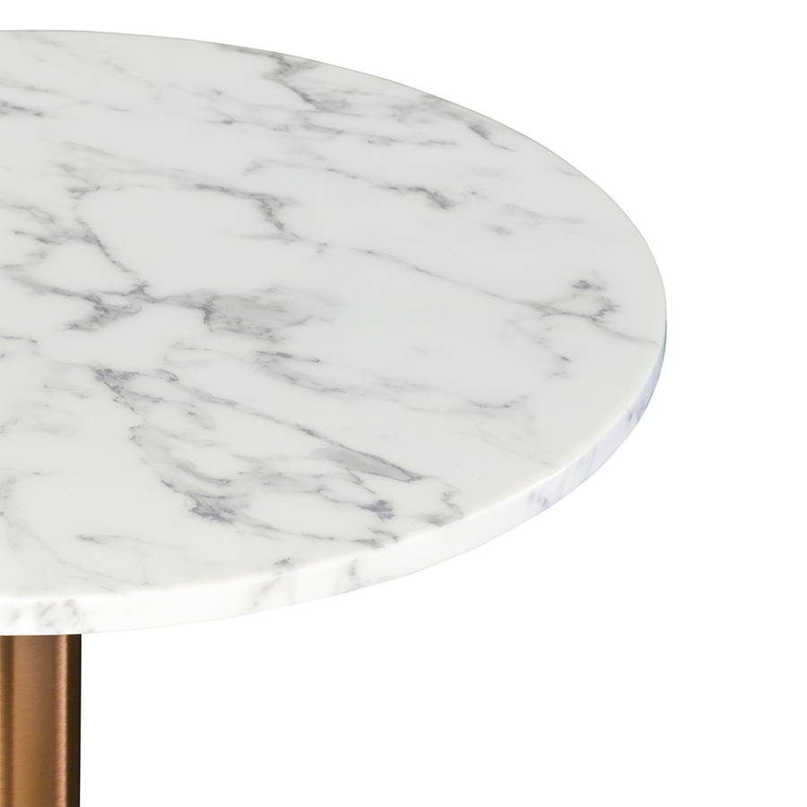 Материалы: столешница – искусственный мрамор, основание – нержавеющая сталь. Максимальная нагрузка - 100 кг. Диаметр: 60 см. Высота: 75 см. Цвет: мрамор/золотой.