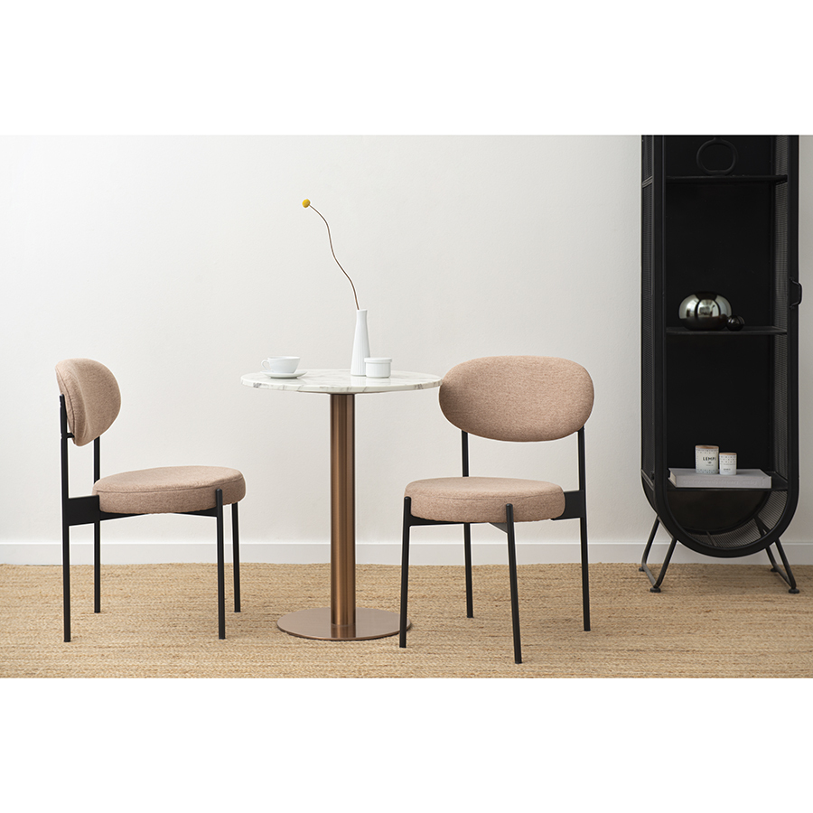 Стол Trond – не только функциональный предмет интерьера, но и стильный акцент, который обязательно обратит на себя внимание. Мебель имеет устойчивое основание из нержавеющей стали с золотистым покрытием. Столешница из искусственного мрамора привносит в дизайн благородные нотки. Материалы высокого качества обеспечивают изделию практичность и долгий срок службы. Модель великолепно сочетается с различными стилевыми решениями: минимализм, неоклассика, фьюжн и др.