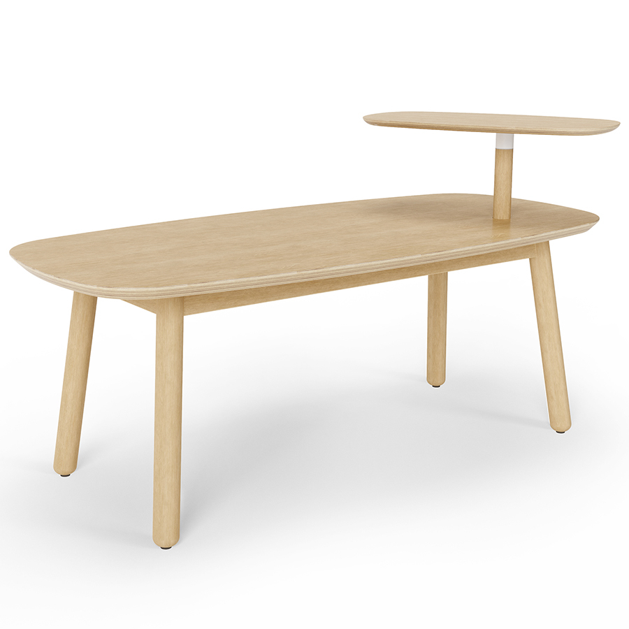 Отсутствие острых углов обеспечивает безопасность и исключает риск сколов столешницы. Приставив стол к дивану, можно отлично провести время, выпить чашечку кофе или почитать любимые журналы. На вращающейся верхней полке удобно разместить чашки, кофейник, молочник со сливками или небольшое комнатное растение. Размеры: длина – 120 см, ширина – 56 см, высота – 62 см.