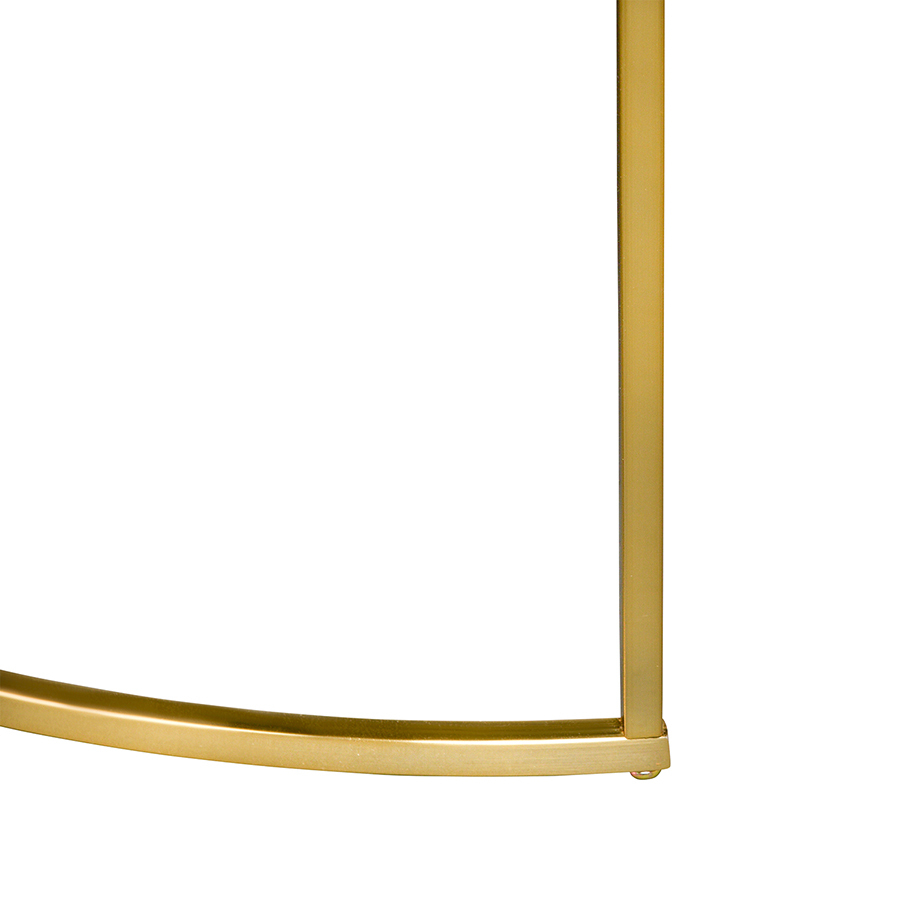 Мебель имеет столешницу из черного мрамора, которая выполняет не только декоративную функцию, но и характеризуется экологичностью, прочностью и простотой в уходе. Материал состоит из натуральных компонентов, не содержит смол, вредных клеящих веществ. Рама из латуни обеспечивает стабильную базу и устойчивость конструкции.
