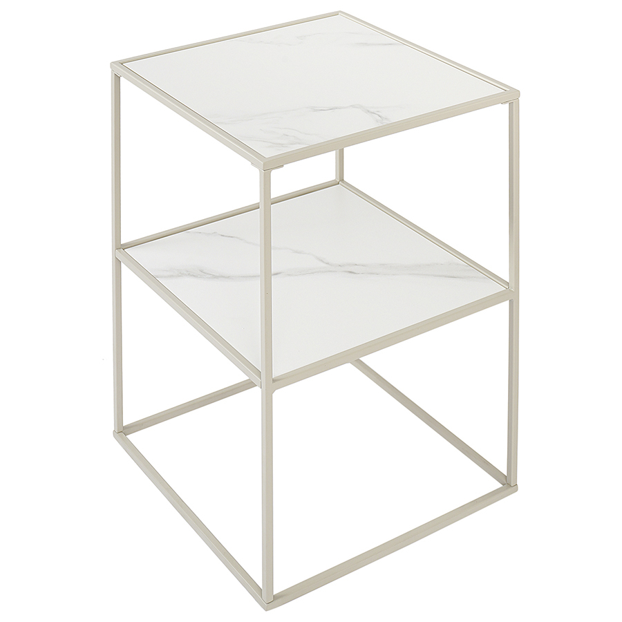 Материалы: столешница – керамика, каркас – сталь. Размеры: 38х38х52 см. Цвет: бежевый.