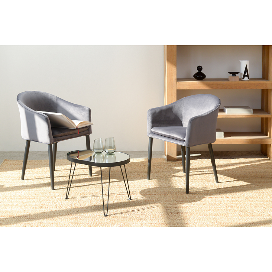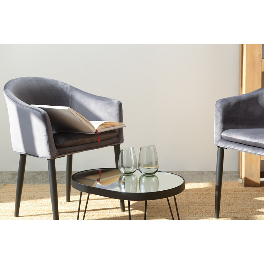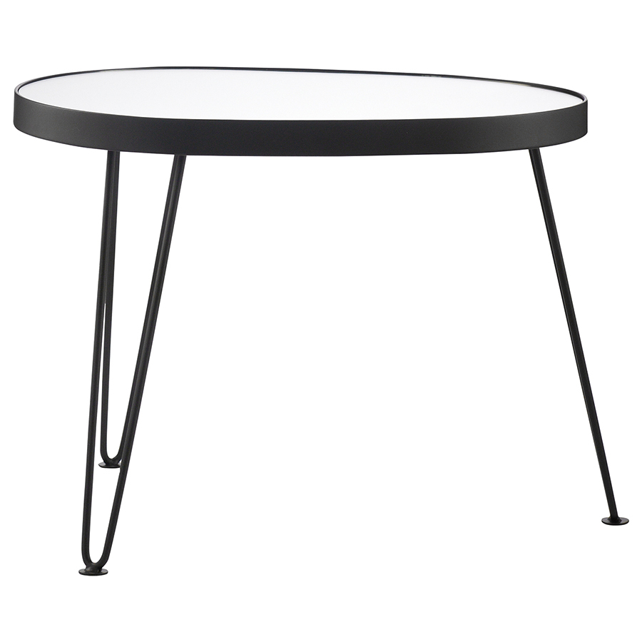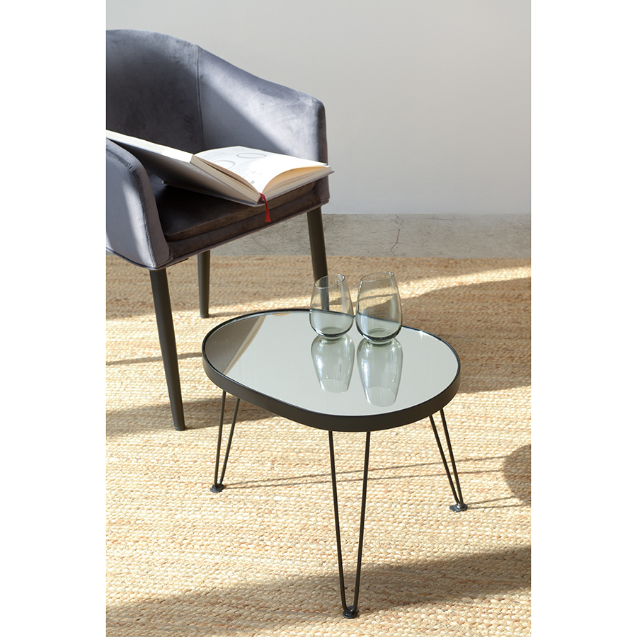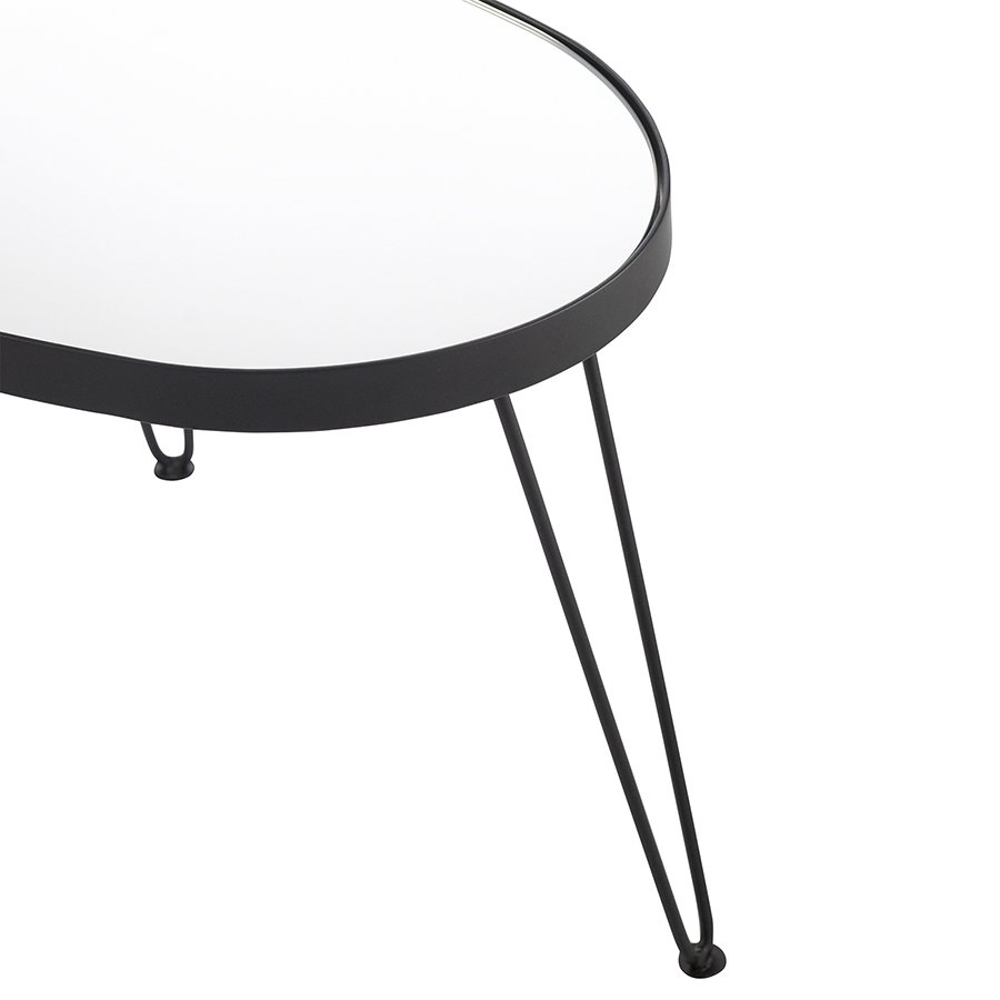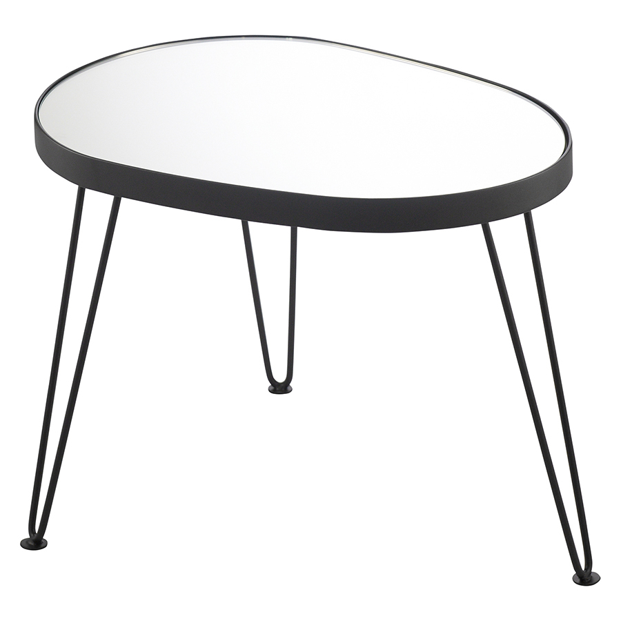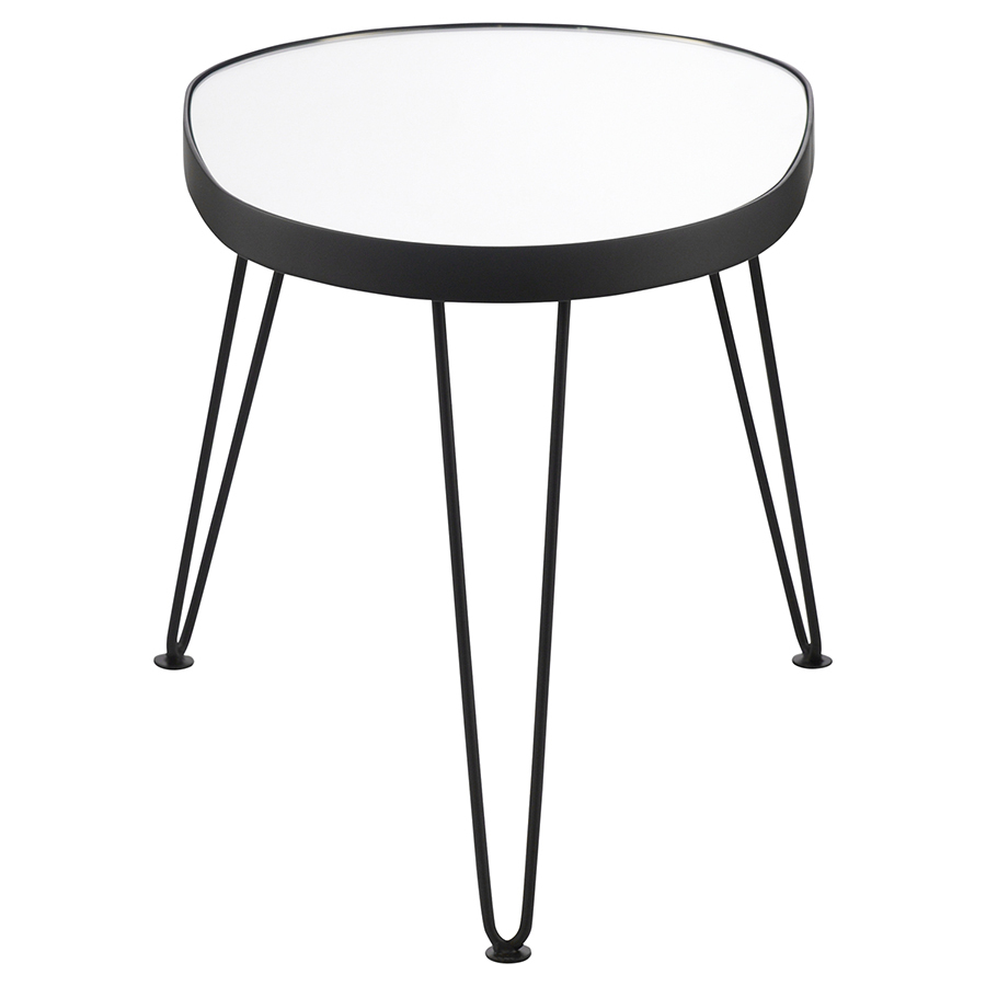 Материалы: столешница – зеркало, каркас – сталь с порошковым покрытием. Размеры: 55х42х38 см.