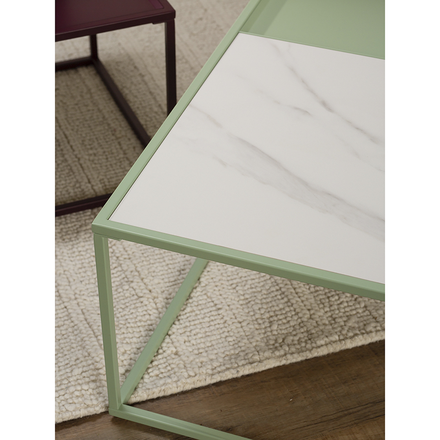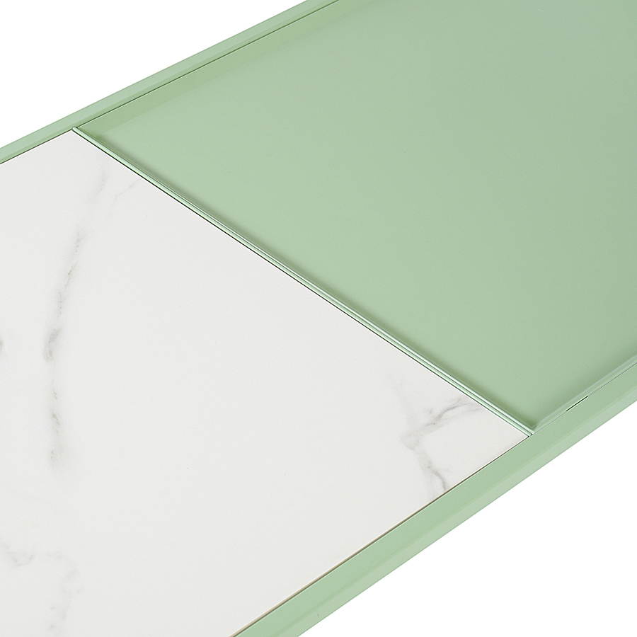 Материалы: столешница – углеродистая сталь, керамика, каркас – сталь с порошковым покрытием. Размеры: 110х50х37 см. Цвет: белый/зеленый.