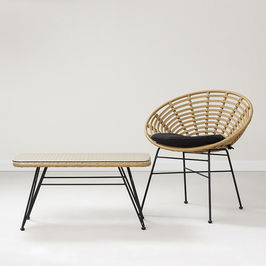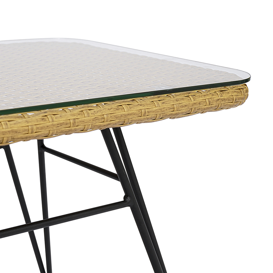 Столик журнальный Vetle – стильный акцент, который украсит собой любое пространство. Сочетание элементов из стали, искусственного ротанга и стекла обеспечивает мебели интересный вид и делает ее практичной и долговечной.