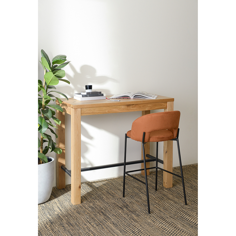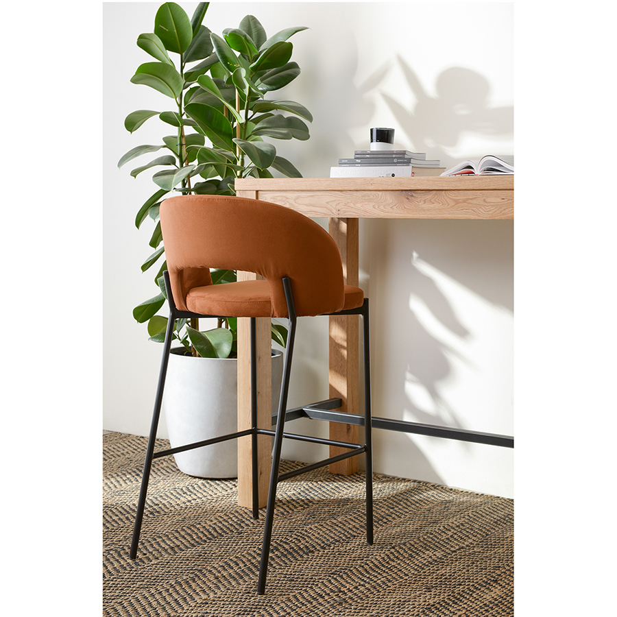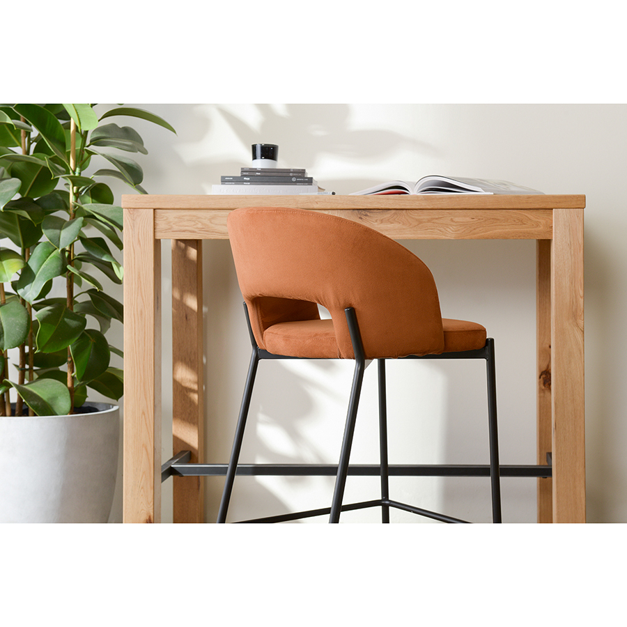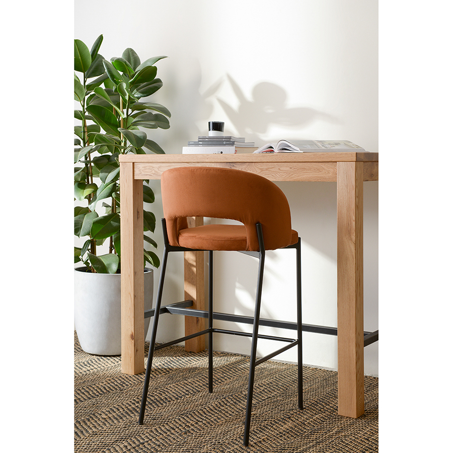 Удобный барный стул благородного коричневого цвета украсит кухню или столовую.