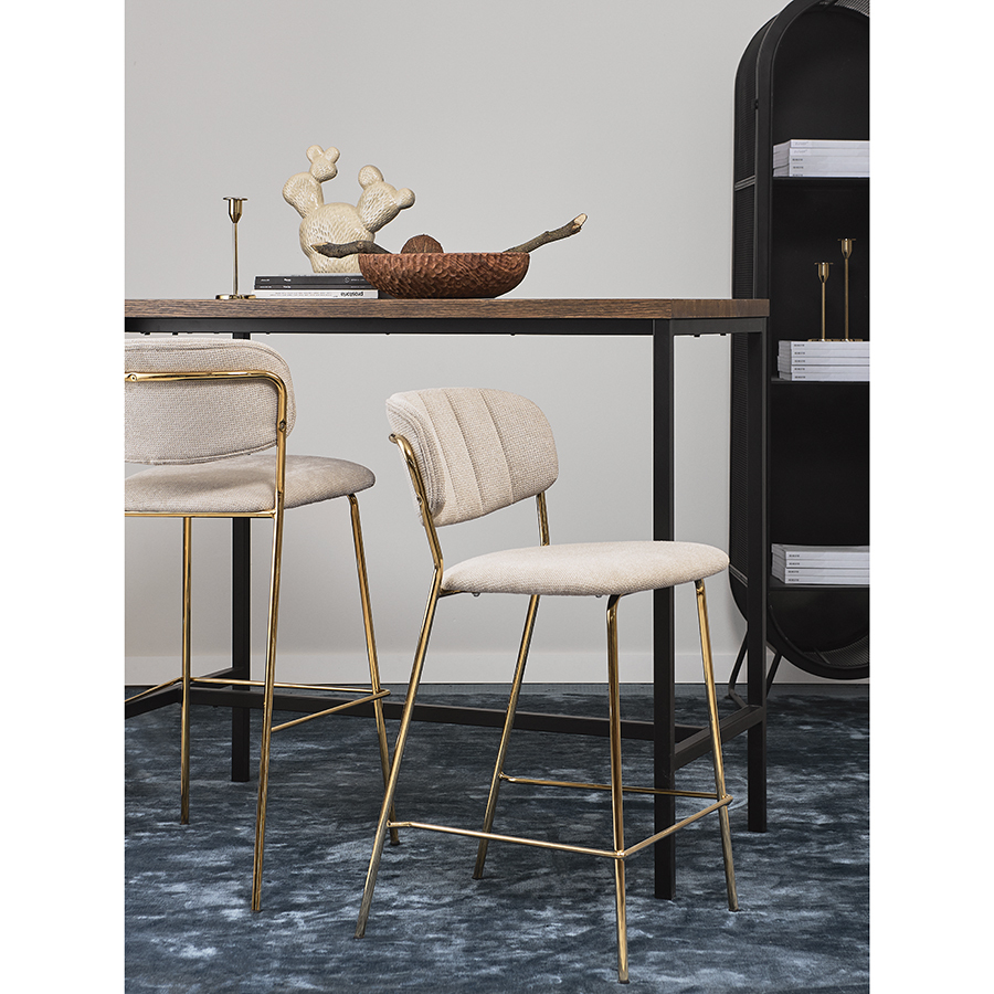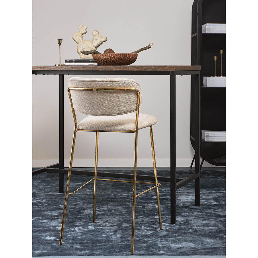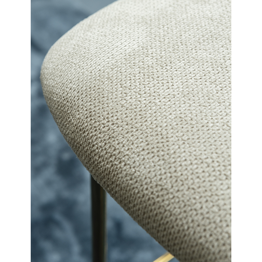 Стул барный Eirill с обивкой из фактурного шенилла смотрится стильно и презентабельно. Материал приятный на ощупь, износостойкий и нетребовательный в уходе. Комфорт при сидении достигается за счет широкой, полукруглой спинки, глубокой посадки и высоких подлокотников с мягкими накладками. Плавные формы и декоративная строчка делают дизайн элегантным. Практичность и долговечность мебели обеспечивает прочный и надежный железный каркас. Наличие специальной перекладины позволяет удобно разместить ноги во время отдыха. Такой стул великолепно дополнит барную зону в жилом помещении, кафе или ресторане. Модель органично сочетается с такими интерьерными решениями, как неоклассика, фьюжн, эклектика, поп-арт, гранж и другими.