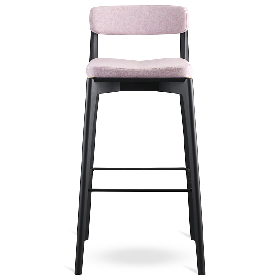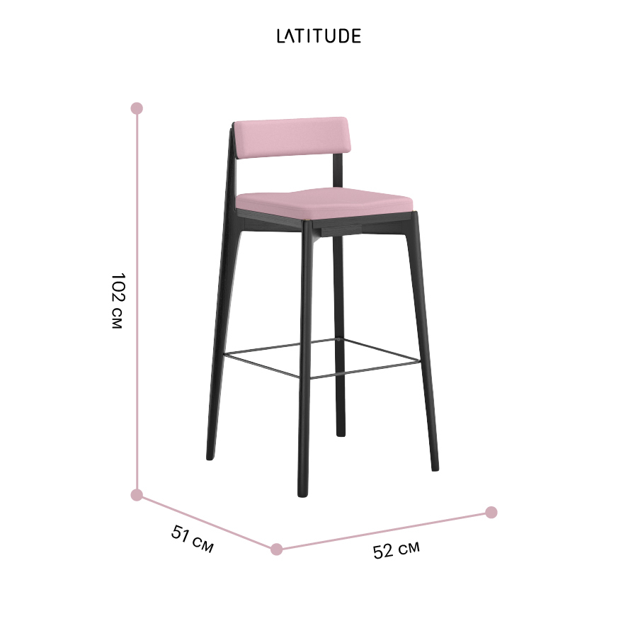 Материалы: массив ясеня, фанера, 100%, полиуретан, 100%, полиэстер, сталь. Размеры: 51х52х102 см. Высота сиденья: 79 см. Ширина сиденья: 39 см. Глубина сиденья: 37 см. Высота спинки: 24 см. Ширина спинки: 37 см. Высота подножки: 33 см. Максимальная нагрузка: 136 кг. Цвет основания: черный. Цвет обивки: розовый.