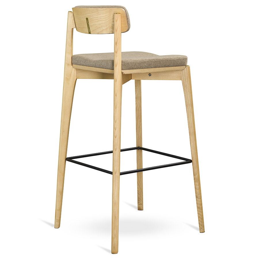 Cтул барный выполнен из массива ясеня – твердой породы дерева с прекрасной текстурой и отличными эксплуатационными свойствами. Плотность и прочность древесины сравнима с характеристиками дуба, что обеспечивает изделию из данного материала высокую устойчивость к деформации, ударам и долговечную конструкцию. Ткань обивки обладает высокими показателями износостойкости. Используемый в качестве наполнителя сиденья пенополиуретан отличается комфортной жесткостью.