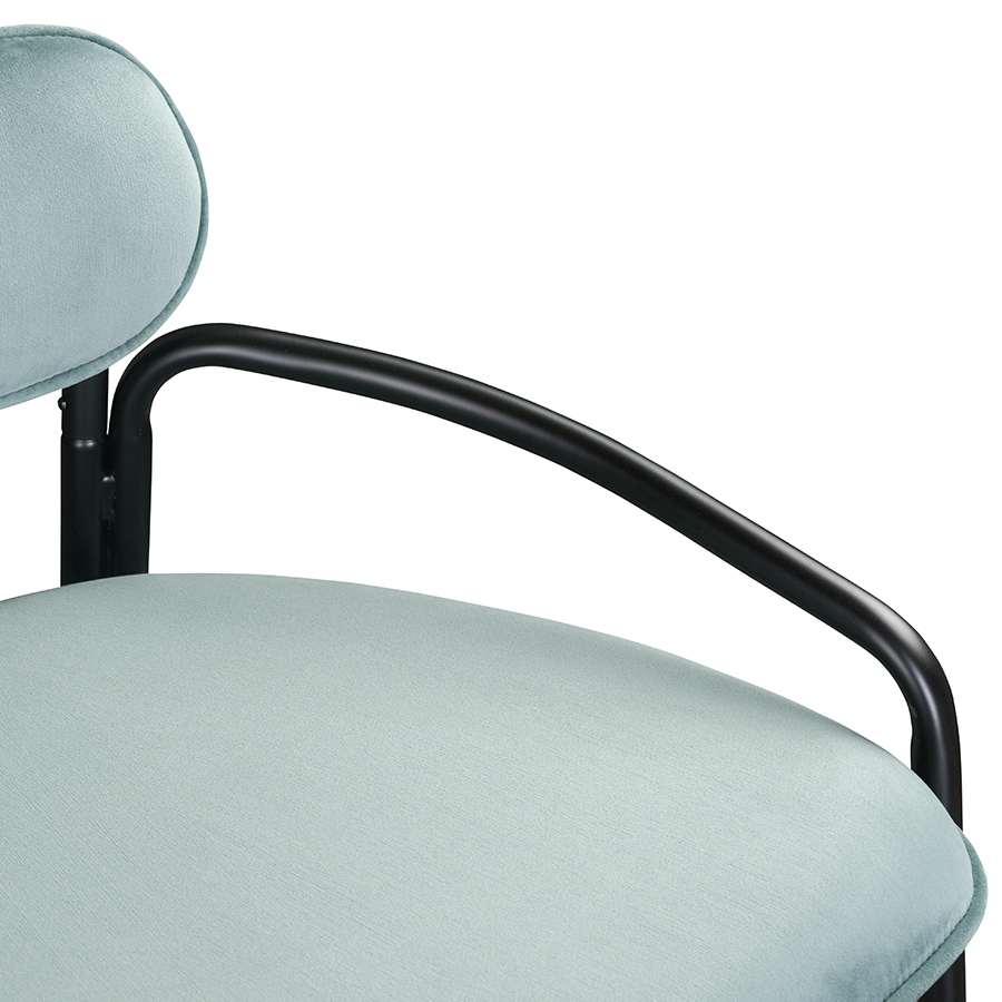 Стальное основание с порошковым покрытием делает конструкцию прочной и надежной, а мягкий велюр с бархатистой текстурой обеспечивает тактильный комфорт. Ткань обивки обладает высокими показателями износостойкости. Используемый в качестве наполнителя пенополиуретан отличается комфортной плотностью и жесткостью.