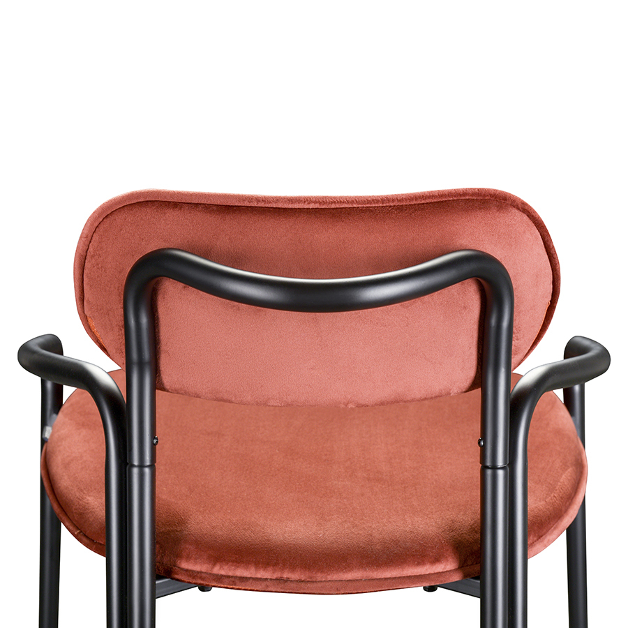 Стальное основание с порошковым покрытием делает конструкцию прочной и надежной, а мягкий велюр с бархатистой текстурой обеспечивает тактильный комфорт. Ткань обивки обладает высокими показателями износостойкости. Используемый в качестве наполнителя пенополиуретан отличается комфортной плотностью и жесткостью.
