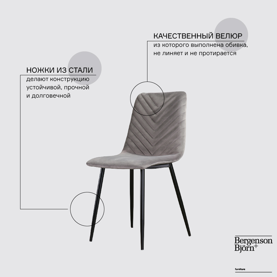 Стул Clifford с обивкой из бархатистого велюра – стильное решение для интерьера гостиной, рабочего кабинета или кухни. Мебель привлекает внимание простыми формами и удачным сочетанием материалов. Декоративная строчка на спинке обеспечивает модели оригинальный вид. Мебель имеет надежное, устойчивое основание. Ножки покрыты защитным порошковым напылением черного цвета. Легкий, компактный стул можно без труда перемещать и устанавливать в любом удобном месте. Качественные, износостойкие материалы гарантируют изделию долгий срок службы.