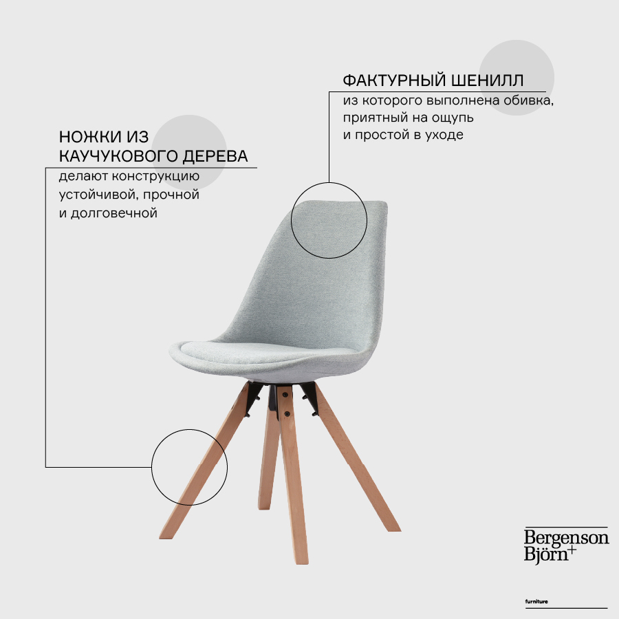 Материалы: 100% полиэстер, пластик, поролон, железо, каучуковое дерево. Размеры: 50х52х85 см. Высота сиденья: 49 см. Ширина сиденья: 50 см. Глубина сиденья: 40 см. Высота спинки: 39 см. Ширина спинки: 45 см. Цвет: светло-серый.