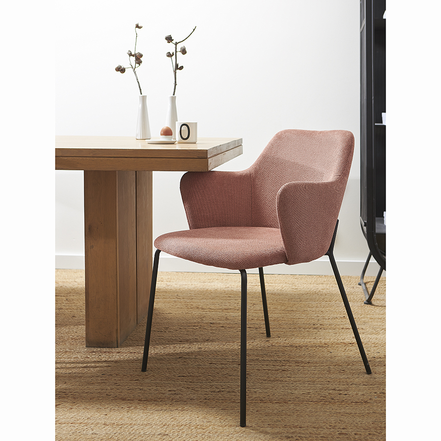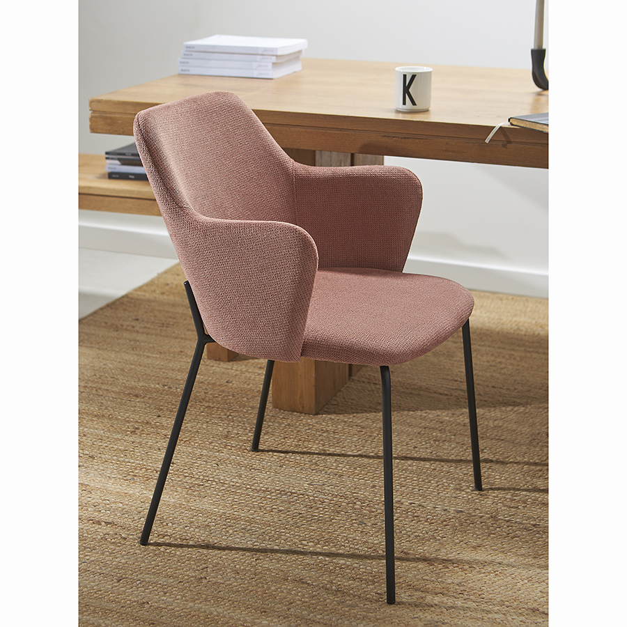 Стул Dwight приятного розового оттенка великолепно дополнит обеденную зону на кухне или в столовой, украсит пространство гостиной, спальни и рабочего кабинета. За счет минималистичного дизайна модель актуальна для большинства интерьерных стилей.