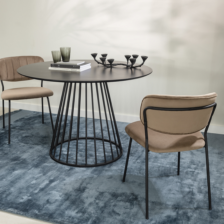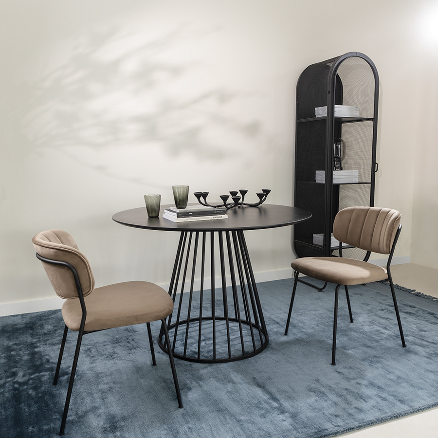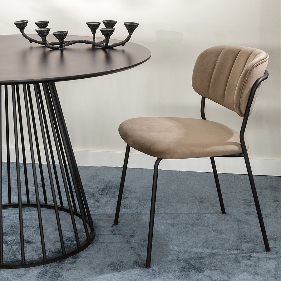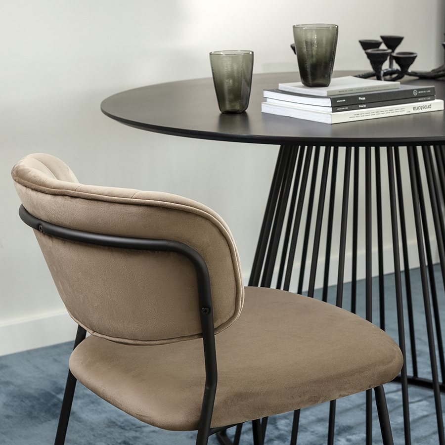Стул Eirill с обивкой из мягкого, бархатистого велюра смотрится стильно и благородно. Материал приятный на ощупь, износостойкий и нетребовательный в уходе. Комфорт при сидении достигается за счет широкой, полукруглой спинки, глубокой посадки и высоких подлокотников с мягкими накладками. Плавные формы и декоративная строчка делают дизайн элегантным. Практичность и долговечность мебели обеспечивает прочный и надежный железный каркас. Модель органично вписывается в интерьер, оформленный в скандинавском стиле, эклектика, фьюжн, неоклассика и др.