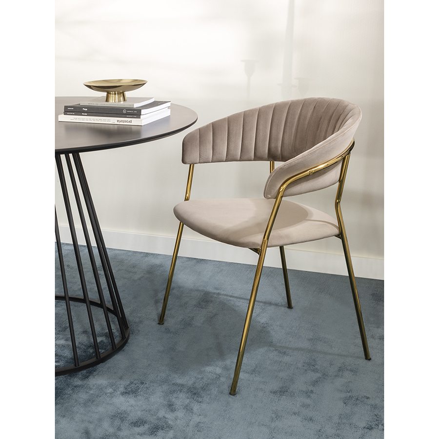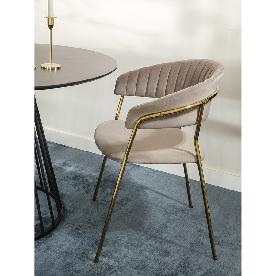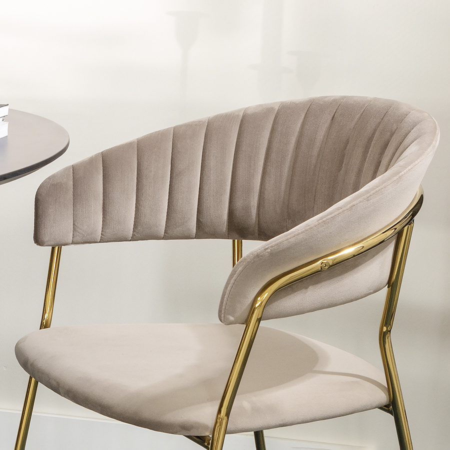 Мягкие сиденье и спинка, обтянутые велюром, создают комфорт во время отдыха на стуле. Материал с бархатистой фактурой обеспечивает красивый визуальный эффект и дарит приятные тактильные ощущения. Помимо высоких декоративных свойств ткань обивки характеризуется долговечностью и устойчивостью к износу. Железные ножки гарантируют конструкции прочность и надежность. Такой тандем материалов позволяет сочетать стул с различной отделкой и декором.