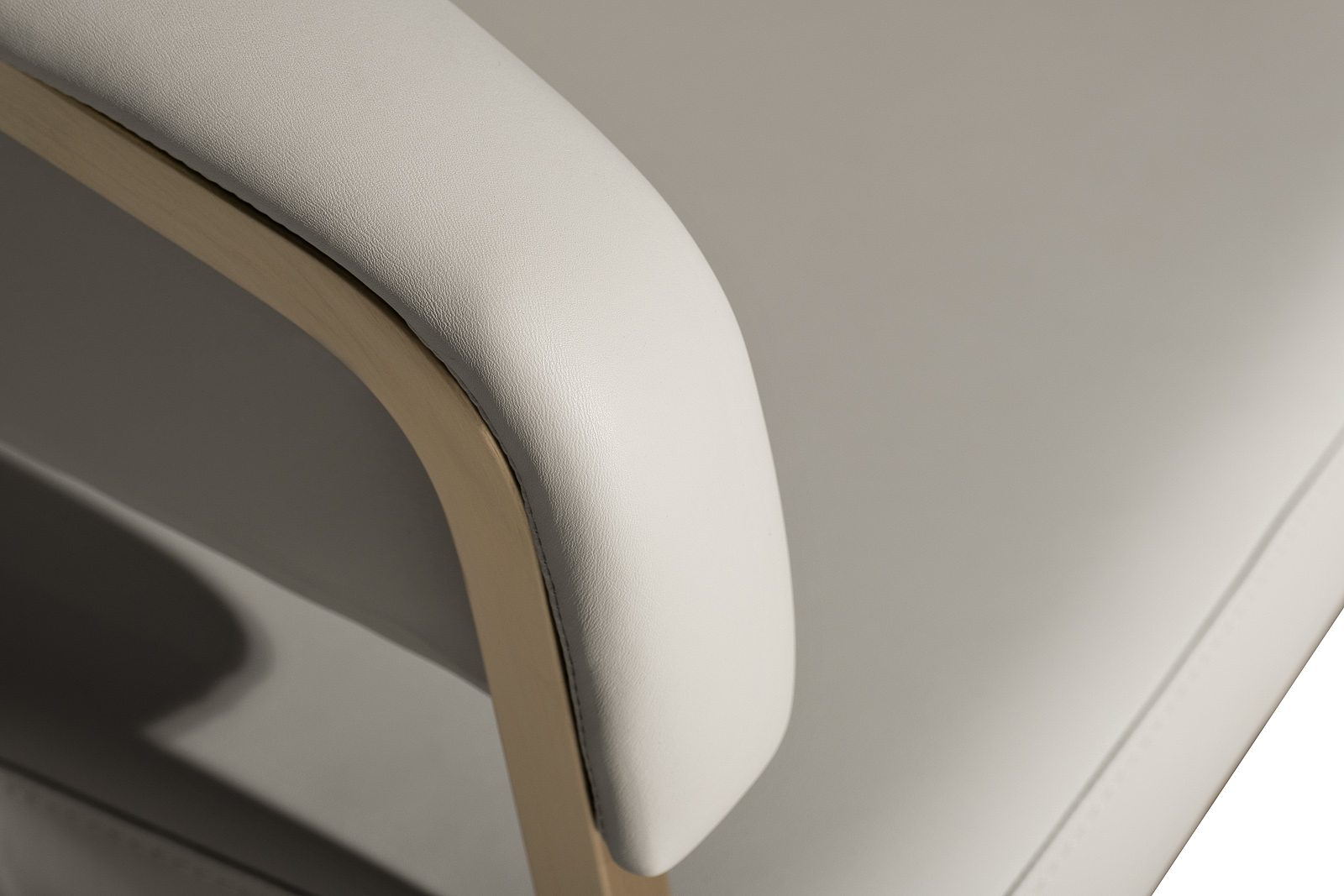 Этот обеденный стул с золотым каркасом словно создан для интерьеров, где ценят благородные акценты и продуманную эстетику. Светло-серая матовая экокожа выгодно подчеркивает изящество линий спинки и подлокотников, а основание в матовом золоте добавляет образу современную роскошь. Конструкция выглядит лёгкой, но сохраняет устойчивость и комфортную посадку для обеденной зоны или рабочего пространства. Такой светло-серый стул из экокожи становится не просто посадочным местом, а акцентной деталью интерьера, которая отражает вкус и статус владельца. Габариты сиденья - 52*58*45см, наполнитель - пенополиуретан.