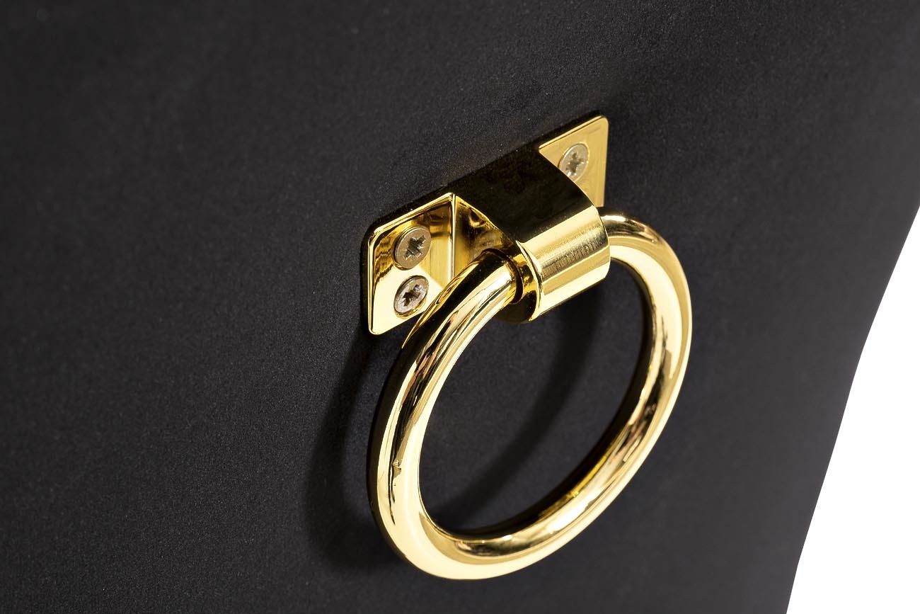 Стул с обивкой из черного велюра, каретной стяжкой и золотым кольцом на спинке смотрится дорого, презентабел ьно и изысканно. Кольцо позволяет легко выдвинуть стул из-за стола, не касаясь ткани. Эту модель можно заказать в любой цветовой гамме; также есть возможность купить уже готовое изделие со склада. Данные стулья на заказ изготавливаются на собственном производстве компании, поэтому цена на них приятная и доступная. Габариты стула: высота-990мм, глубина-660мм, ширина-490мм. Габариты сиденья: ширина 490мм, глубина 460мм, высота- 500мм. В стандартном исполнении: обивка - велюр Riviera 100, цвет ножек - 4, кольцо - золото.