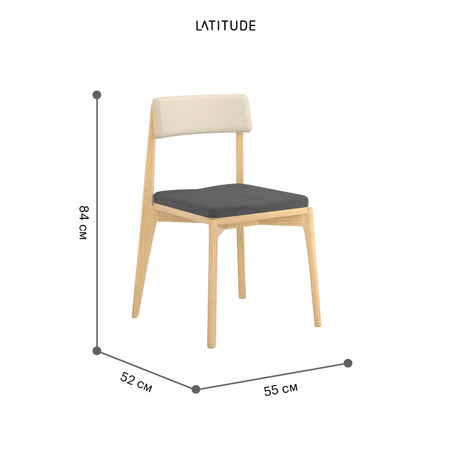 Материалы: массив ясеня, фанера, 100%, полиуретан, 100%, полиэстер. Размеры: 52х55х84 см. Высота сиденья: 48 см. Ширина сиденья: 45 см. Глубина сиденья: 44 см. Высота спинки: 37 см. Ширина спинки: 40 см. Максимальная нагрузка: 136 кг. Цвет основания: ясень. Цвет обивки: бежевый/темно-серый.