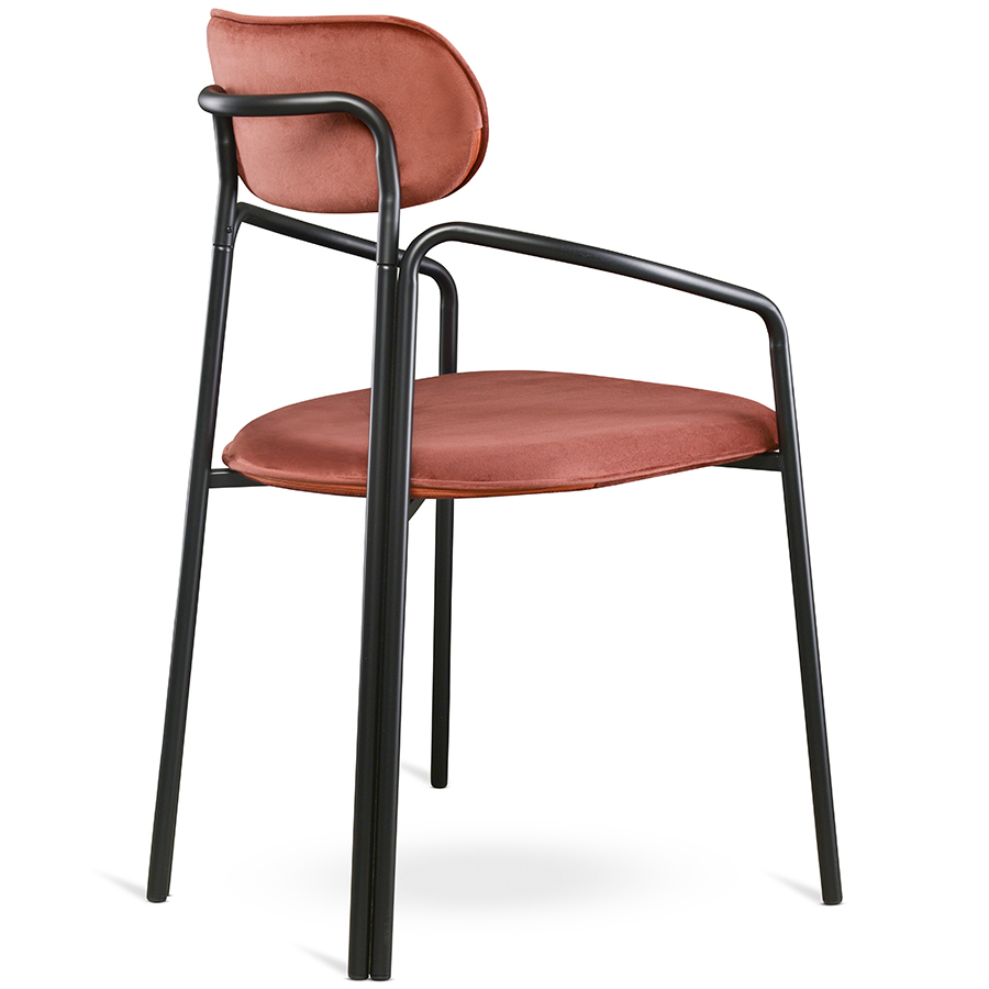 Стальное основание с порошковым покрытием делает конструкцию прочной и надежной, а мягкий велюр с бархатистой текстурой обеспечивает тактильный комфорт. Ткань обивки обладает высокими показателями износостойкости. Используемый пенополиуретан отличается комфортной плотностью и жесткостью.