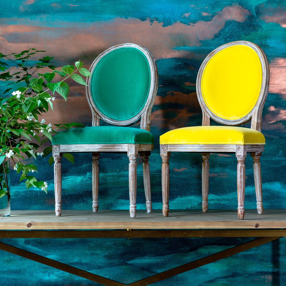 По королевской традиции, обивка стула Луи выполнена из бархатной ткани. Изобретенная в средних веках, она символизировала высшую власть и использовалась исключительно для королевских мантий. Привилегированный статус бархат не уступил и в наши дни.
