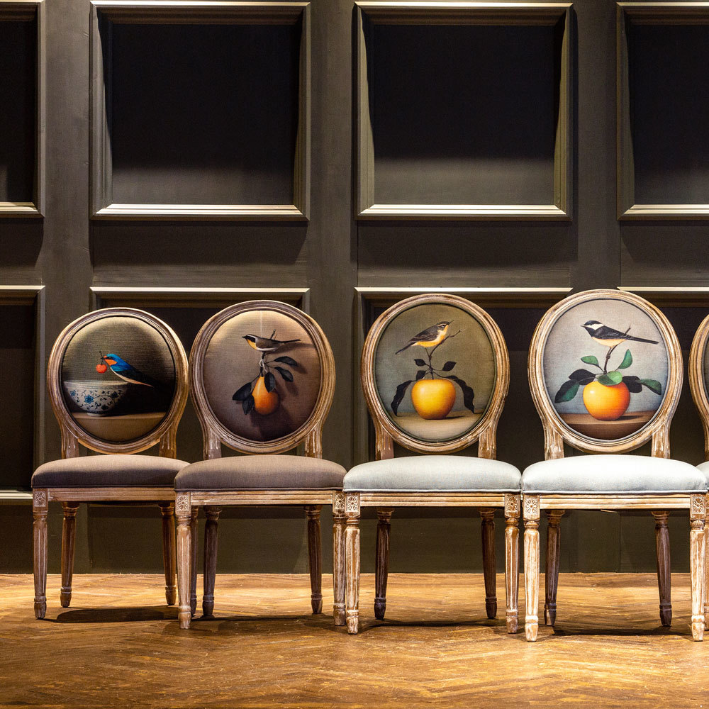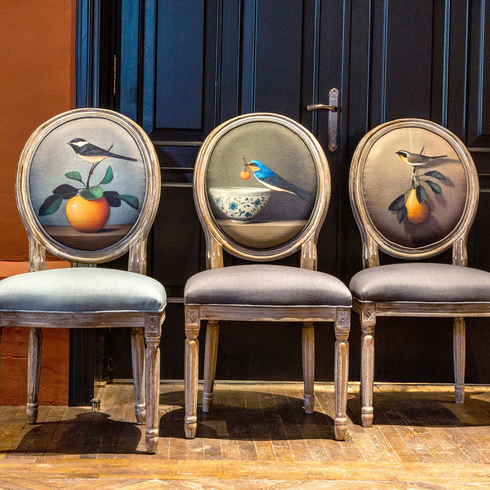 Стулья с овальными спинками - закон симметричной гармонии окружающего пространства. Овалы идеально рифмуются в интерьере с зеркалами и картинными рамами, широкий выбор которых Вы найдете и в нашем каталоге.