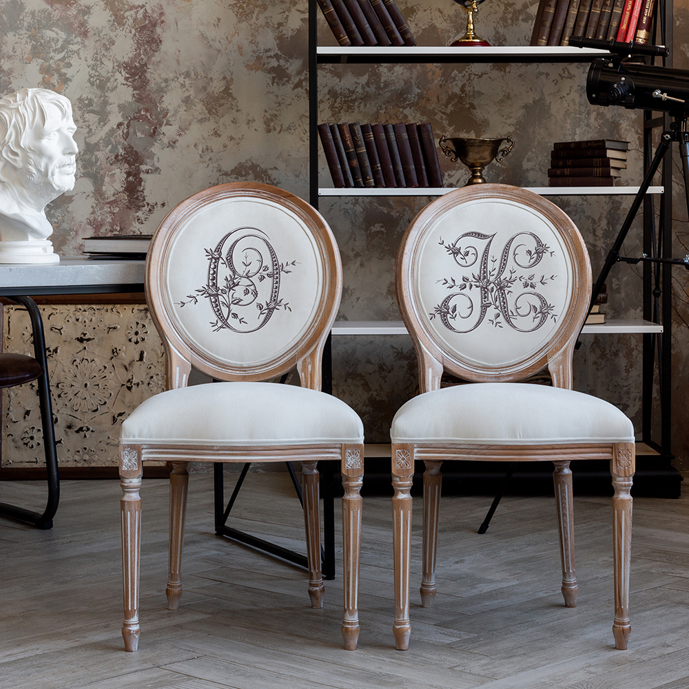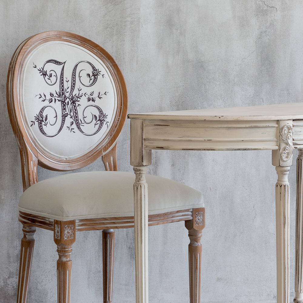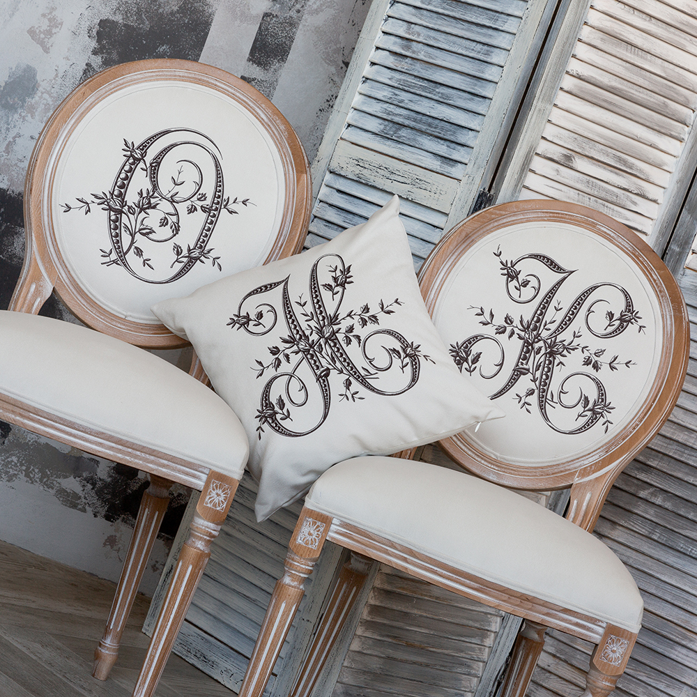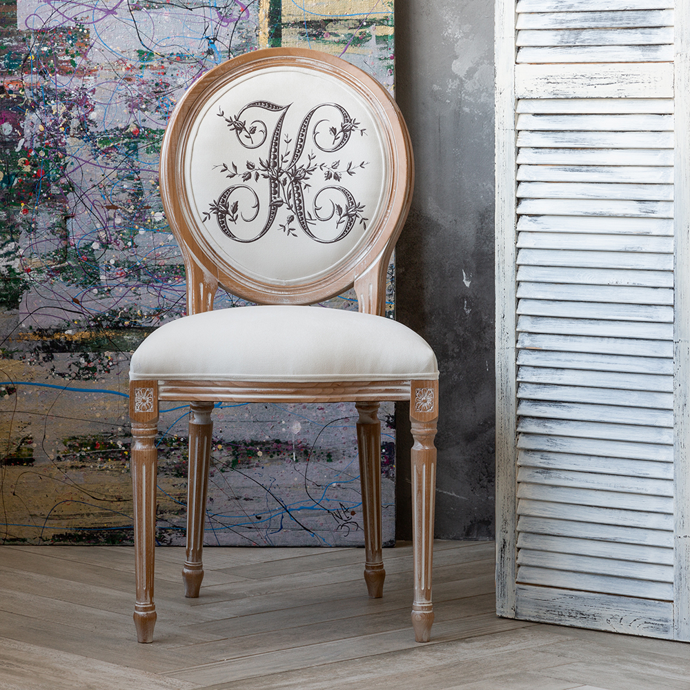 С новой коллекцией мебели Азбука мечты вы всегда сможете рассчитывать на спокойствие и безмятежность. Обратите внимание на стул с монограммой буквы К. Буква украшена бутонами плетистой розы и нежнейшими листочками, обвивающими изящный буквенный символ. Если это первая буква имени, вы имеете живой и магнетический характер. Вы склонны к сотрудничеству, выносливы. Любите развлечения, театры, представления. Линии этой буквы идут вверх и вниз, это означает нередкую смену настроения. Корпус стула изготовлен из натурального бука. Благородная фактура дерева подчеркнута рукописной патиной. Мягкость, комфортабельность и долговечность сидения обеспечены внутренней подвеской из эластичных ремней. Классический корпус эпохи Луи-Филиппа украшен резными желобками и цветочными узорами, выточенными с ювелирной меткостью. Ткань для обивки стула – приятный на ощупь и устойчивый в эксплуатации мебельный микровелюр. Аксессуары "ByObject" - история искусств Вашего интерьера!