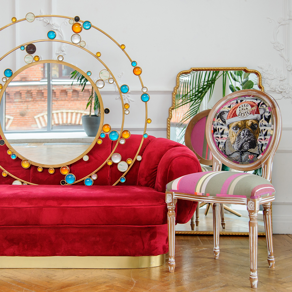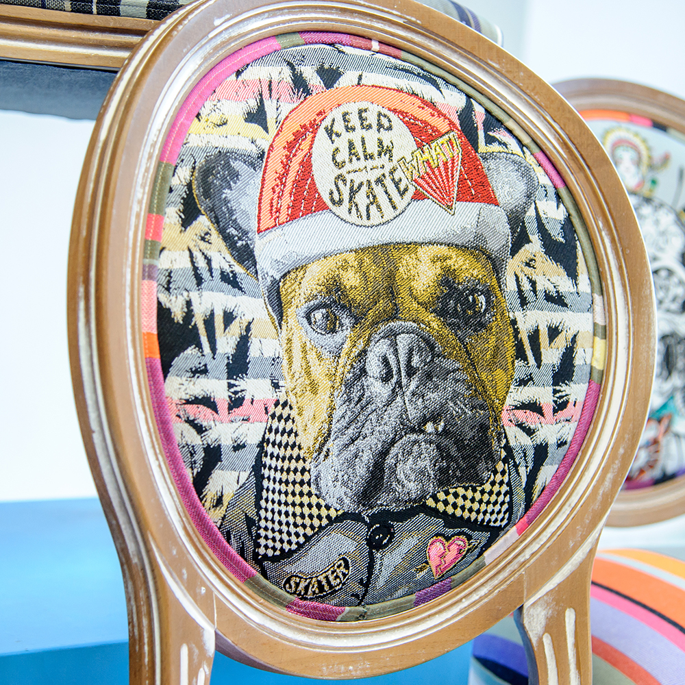Фактурный жаккард для задорного принта соткан мастерами французской ткацкой фабрики Safeco и украшен полосатыми тканями другого текстильного мэтра из Франции Les Toiles Du Souleil.