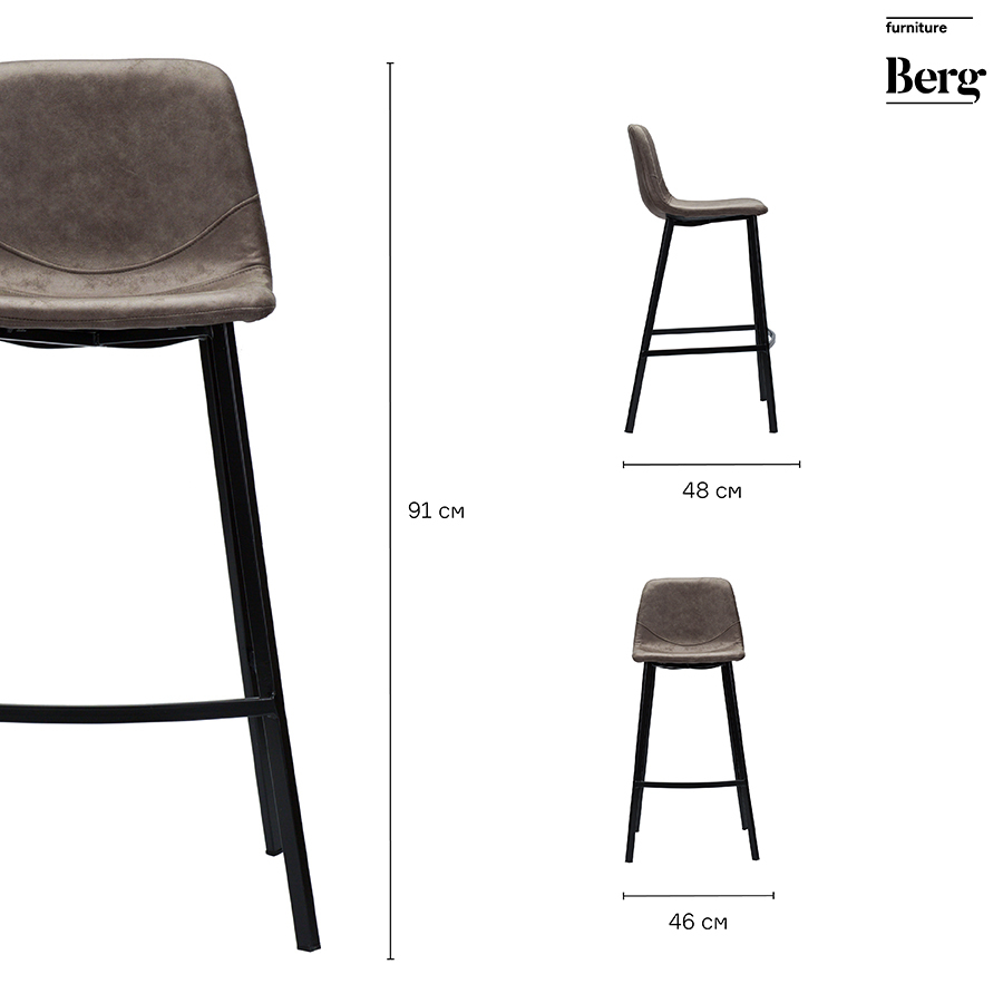 Стул полубарный Berg Hugh экокожа серо-коричневый