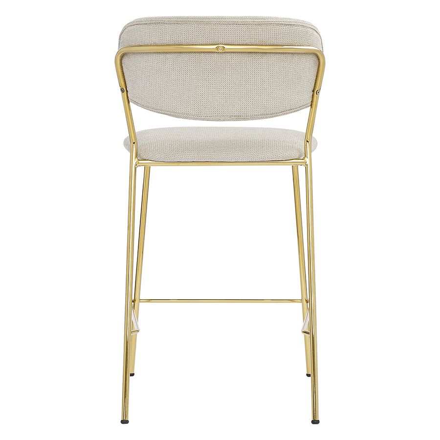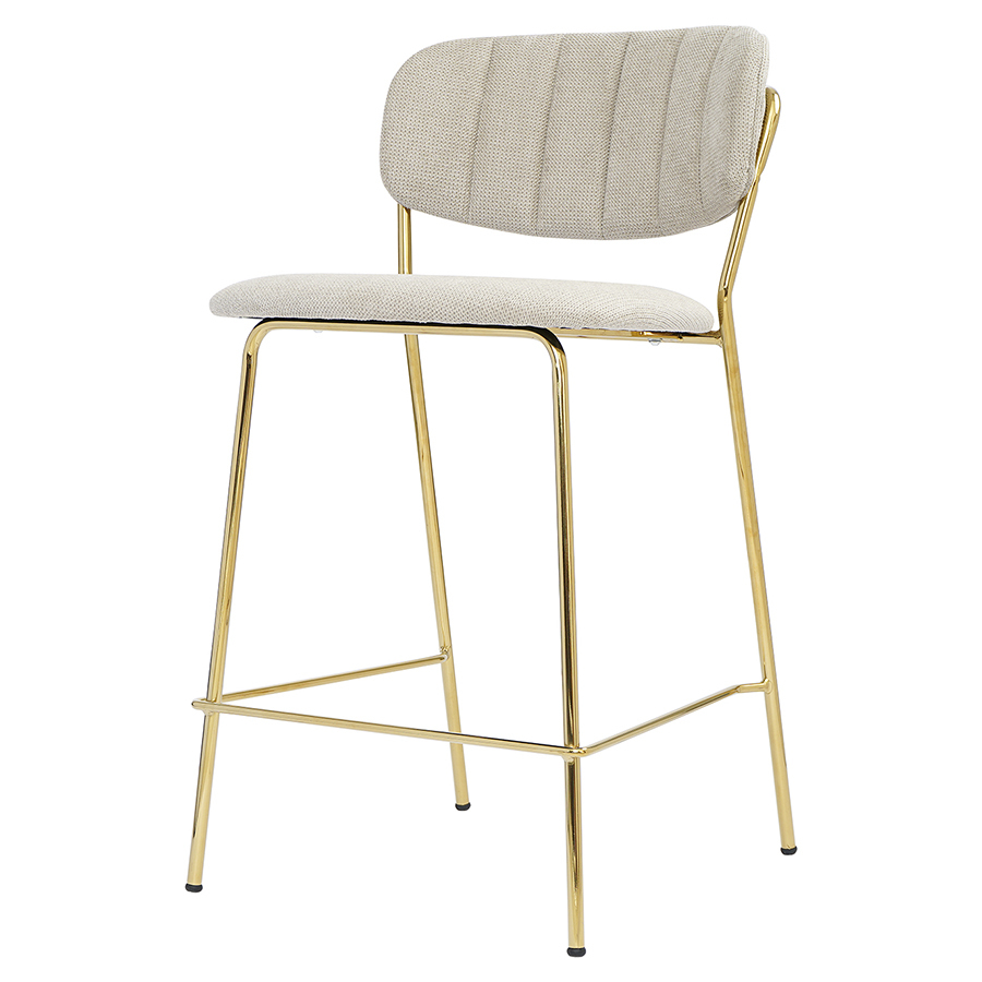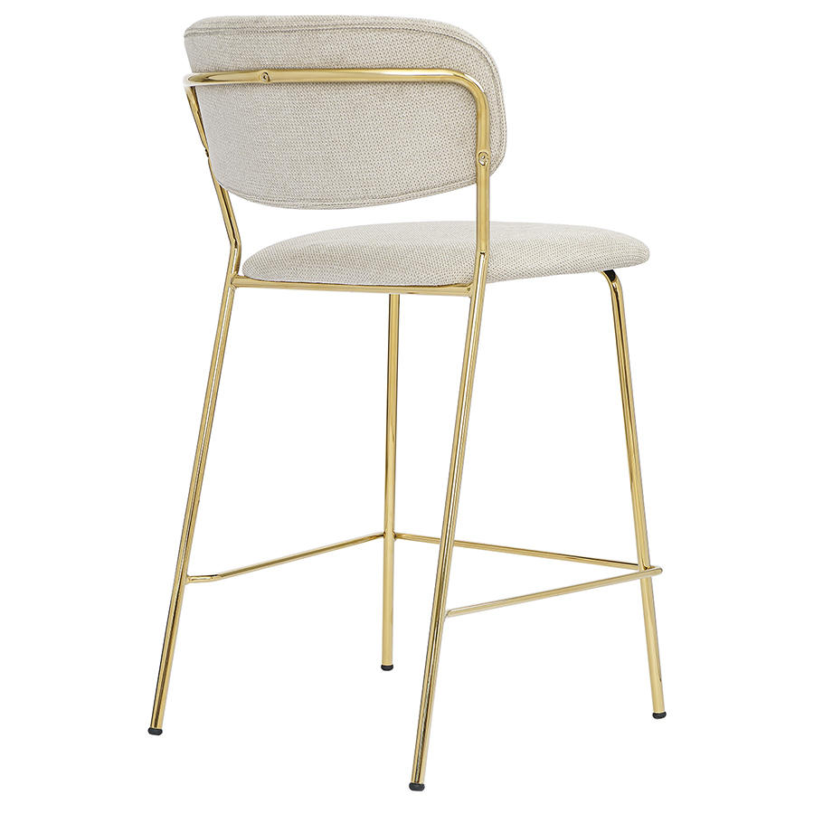 Стул полубарный Eirill с обивкой из фактурного шенилла смотрится стильно и презентабельно. Материал приятный на ощупь, износостойкий и нетребовательный в уходе. Комфорт при сидении достигается за счет широкой, полукруглой спинки, глубокой посадки и высоких подлокотников с мягкими накладками. Плавные формы и декоративная строчка делают дизайн элегантным. Практичность и долговечность мебели обеспечивает прочный и надежный железный каркас. Наличие специальной перекладины позволяет удобно разместить ноги во время отдыха. Такой стул великолепно дополнит барную зону в жилом помещении, кафе или ресторане. Модель органично сочетается с такими интерьерными решениями, как неоклассика, фьюжн, эклектика, поп-арт, гранж и другими.