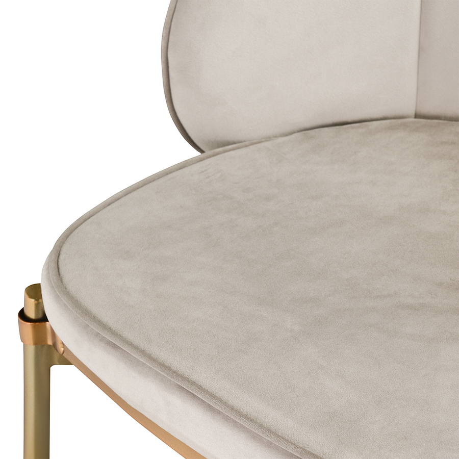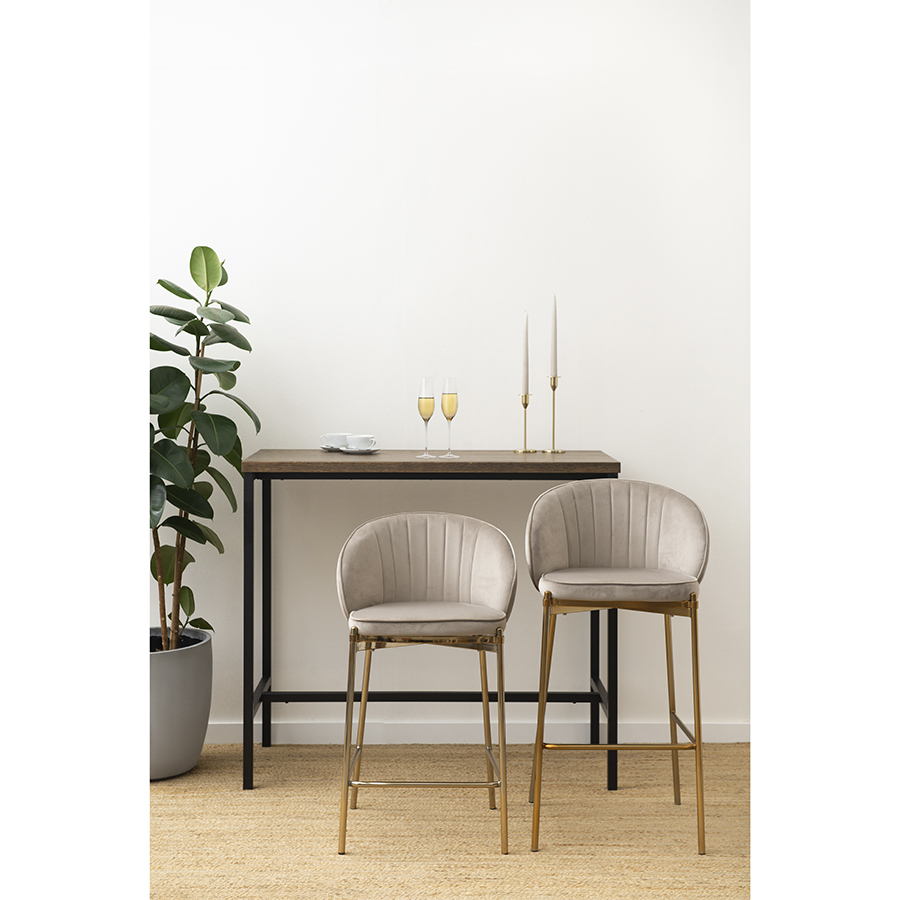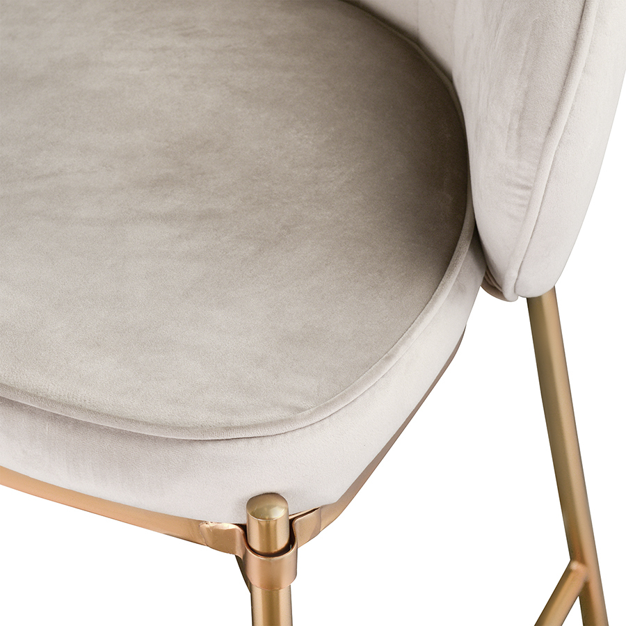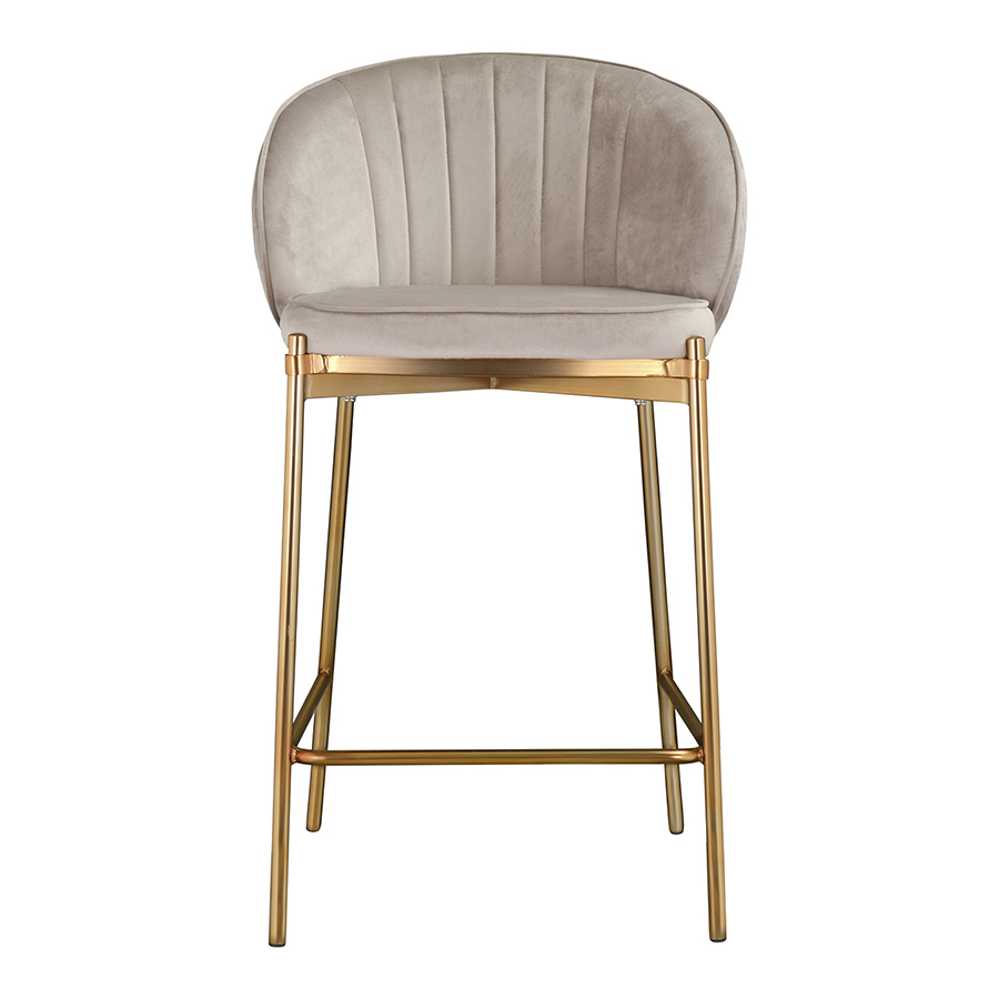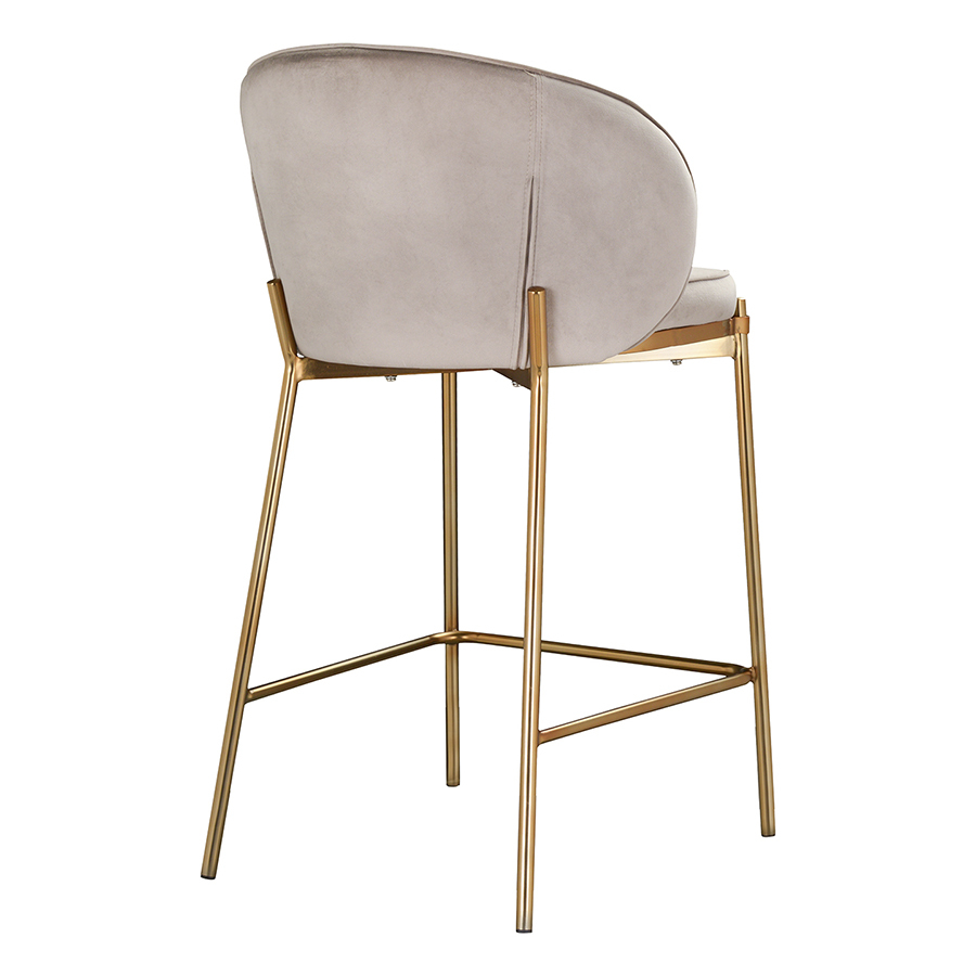 Комфорт во время отдыха на полубарном стуле создается за счет мягкого сиденья с наполнителем из пенополиуретана и высокой закругленной спинки. Обивка из бархатистого велюра, украшенная декоративной строчкой, придает модели особый шарм. Эстетический потенциал материала настолько высок, что ему сложно найти конкурентов. Помимо презентабельного вида и приятных тактильных ощущений, ткань обладает хорошими эксплуатационными характеристиками, такими как прочность, износоустойчивость и долговечность. Ножки мебели выполнены из железа с гальваническим покрытием, что обеспечивает конструкции надежность.