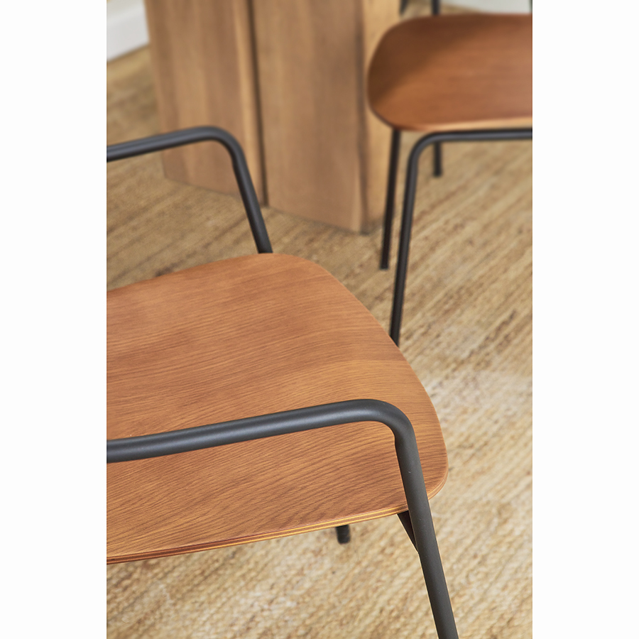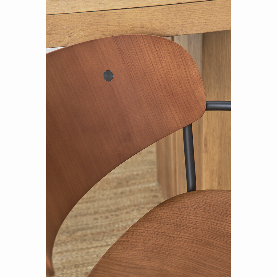 - Спинка и сиденье из шпонированной фанеры не боятся механических повреждений, воздействия влаги, температурных перепадов и деформации, обеспечивают стулу привлекательный вид.