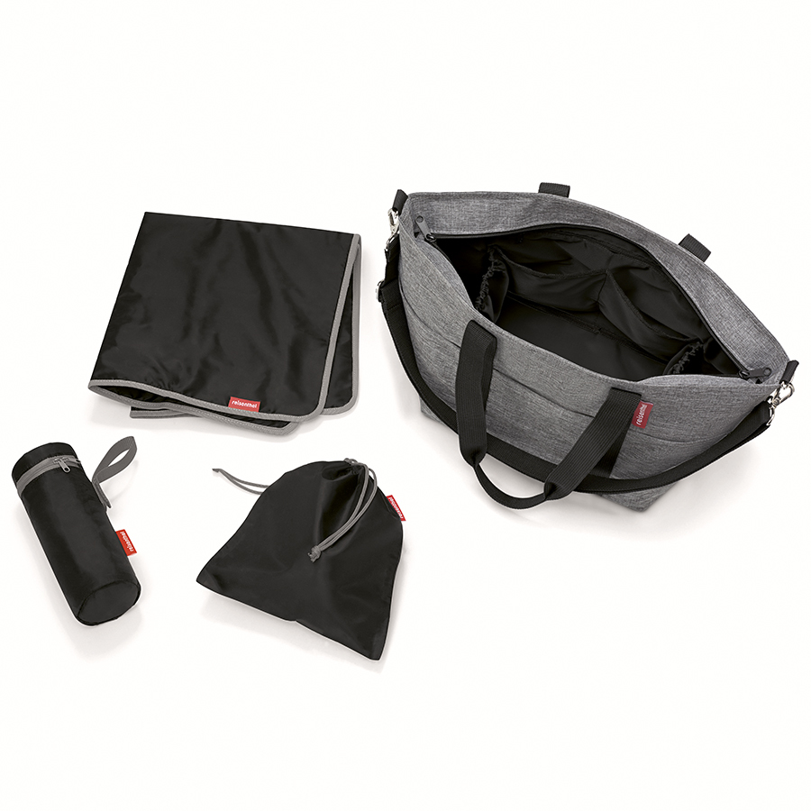 Сумка оборудована двумя удобным ручками и ремнем для ношения через плечо. Внутри мягкий коврик для пеленания, мешочек для белья, держатель для бутылок с застежкой-липучкой. Есть четыре наружных и шесть внутренних карманов. Материал – прочный водоотталкивающий полиэстер из переработанного пластика. Объем: 15 л.