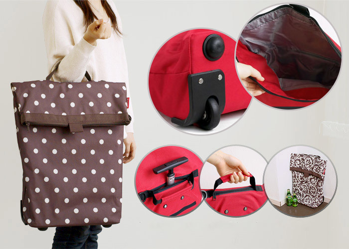 Необычная сумка, которая при желании увеличивается и становится сумкой-тележкой. Удобна для походов в магазин, поездок и переноски большого количества вещей.